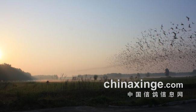 比赛当天下午14点36分,兆尊馆胡维奇先生的一羽灰色黄眼雄鸽率先归来,环号为CHN03-09-019855,以995.7178米/分的分速勇夺冠军。