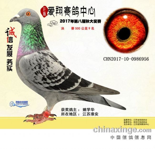 江苏爱翔获奖鸽颁奖暨拍卖大会,定于12月7-8日在江苏省徐州市徐州饭店五楼举行,由著名拍卖师肖雄主持拍卖。同时,为了方便全球鸽友同步竞拍好鸽,江苏爱翔公棚携手中信网,推出“现场与网络同步拍卖服务”。届时,鸽友们可通过中信网直播室观看直播,并在线同步出价,与现场鸽友一同竞拍江苏爱翔精英赛鸽。