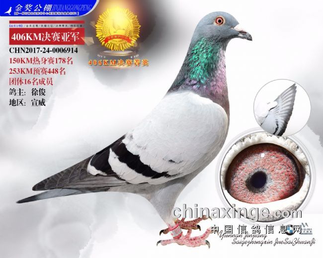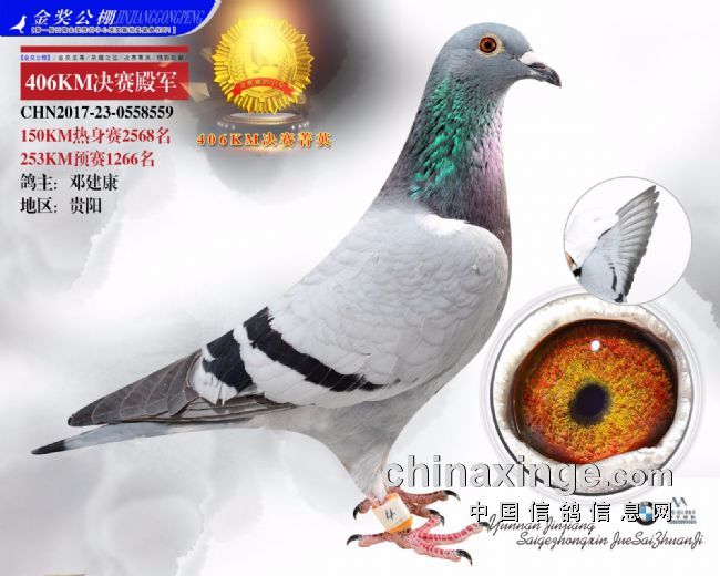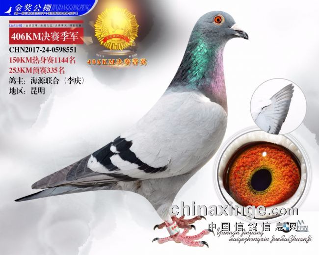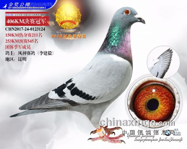 是金子总会发光的!最终,预赛545名,风神赛鸽(李建毅)的2017-24-0123124赛鸽在决赛中超常发挥,以1413.1207米/分的分速一举夺得决赛冠军,一鸣惊人!而云南名家徐俊的2017-24-0006914赛鸽以1382.7999米/分的分速荣获亚军,海源联合(李庆)的2017-24-0598551赛鸽以1380.2052米/分的分速荣获季军。决赛当天报满,比赛圆满结束。