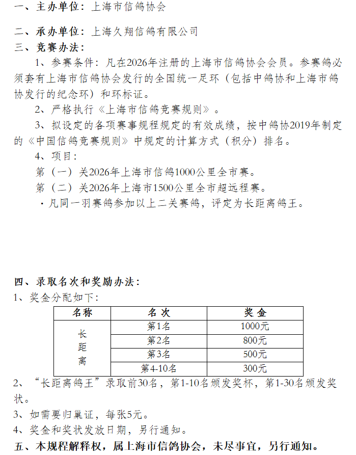 上海市信鸽春季长距离1000公里