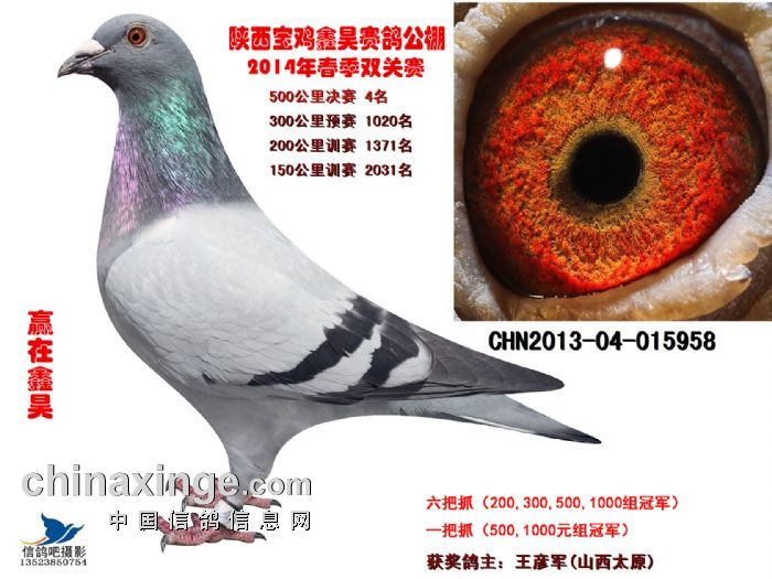陕西宝鸡鑫昊赛鸽公棚,2014年春赛颁奖及拍卖会定于6月30日,(因29日与其他公棚拍卖同天,为了错开鸽友方便来参会故定为30日)星期一进行,颁奖大会于6月30日上午九点三十分在公棚正式举行,欢迎各位鸽友亲临现场。