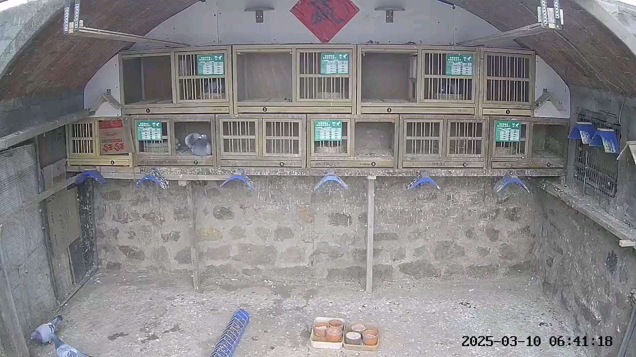 小鸽子在笼口探头探脑的,还是要赶一下,自动门开了,就一只鸽子出来的