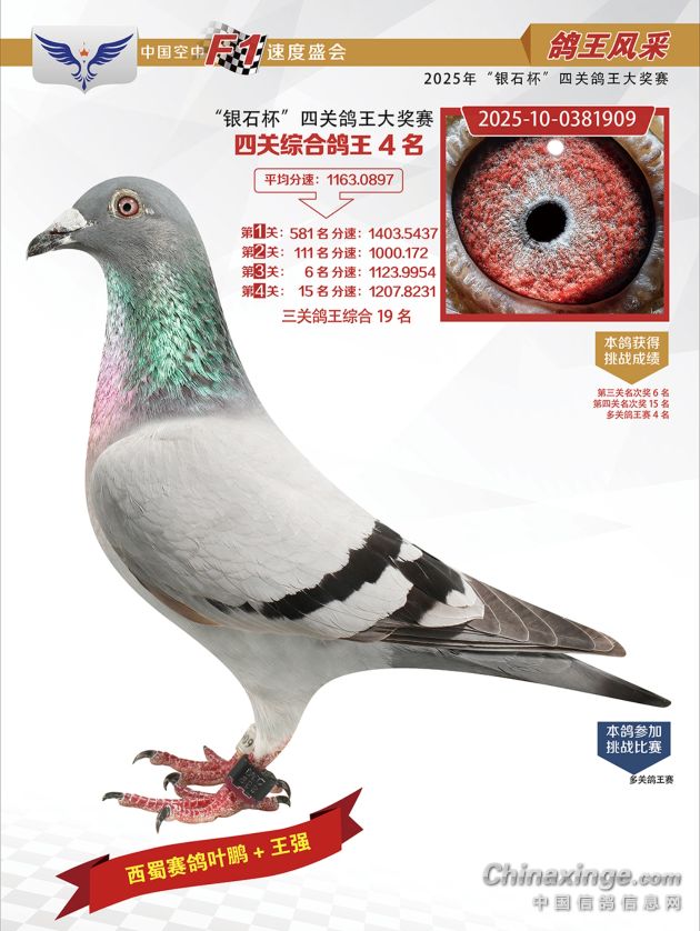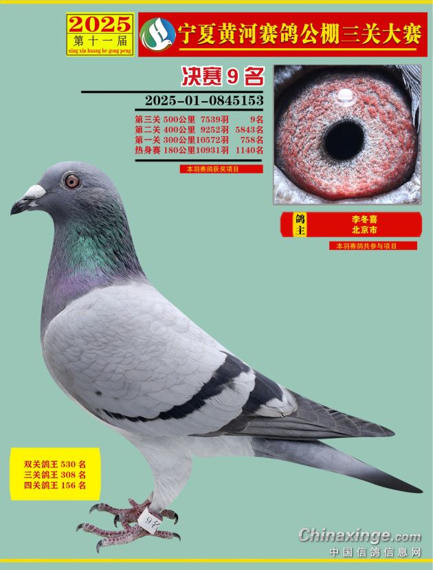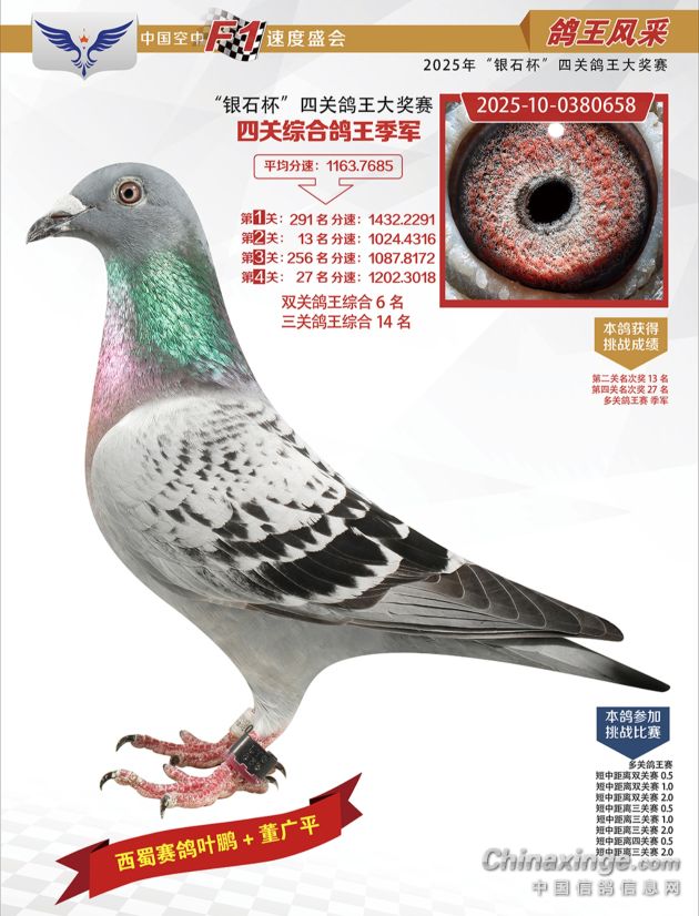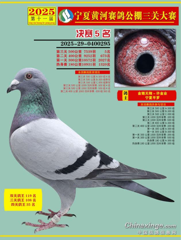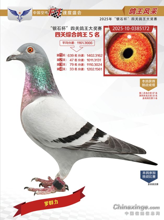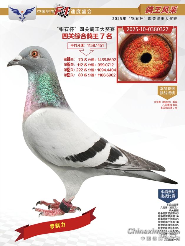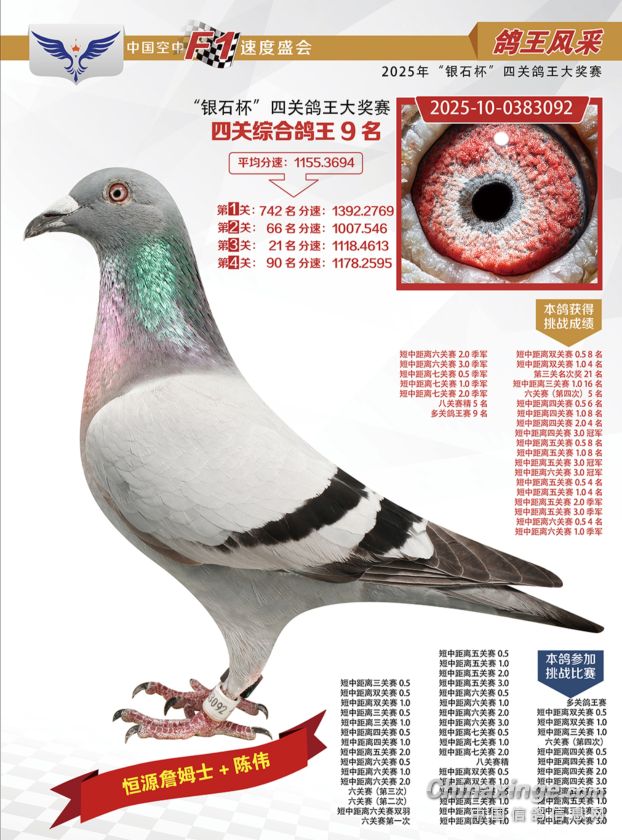 秋赛,亮剑! •  江苏启东银石赛鸽俱乐部2025年“银石杯”四关鸽王大奖赛前九位欣赏。四关鸽王冠军还获得短中距离赛24项冠军、12项亚军、2项季军,成为最大赢家。