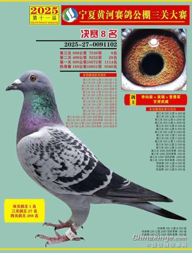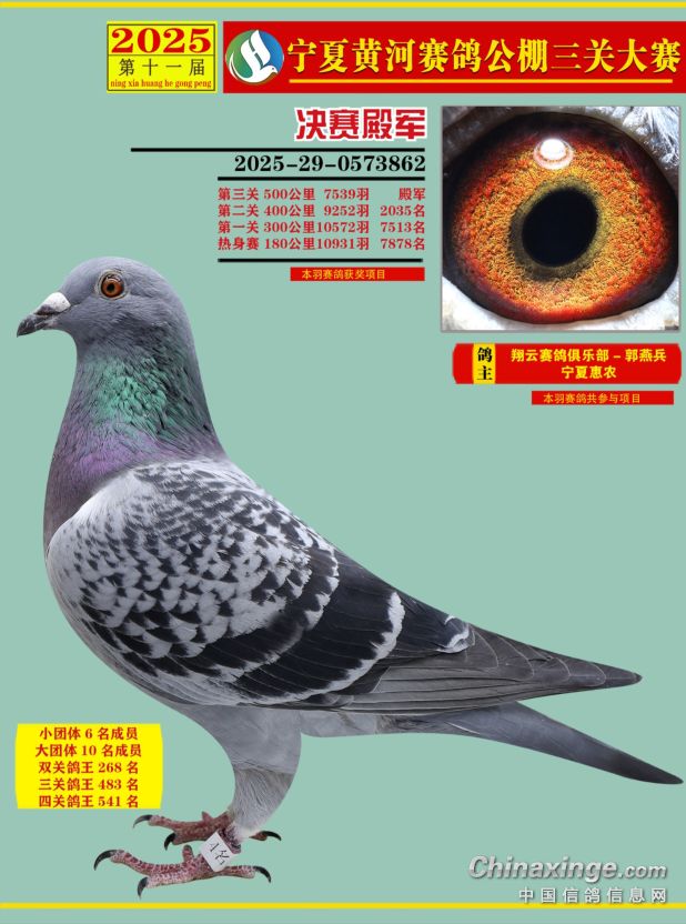 秋赛,亮剑! •  宁夏黄海赛鸽公棚2025年第十一届秋季大奖赛,决赛前九位欣赏。