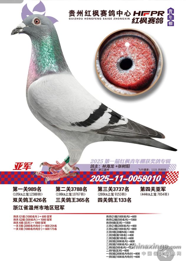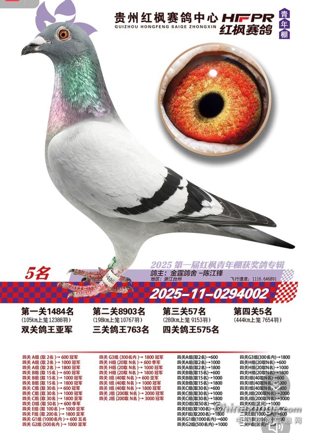 秋赛,亮剑! •  贵州红枫赛鸽中心(青年棚)2025年秋季决赛前九位欣赏。
