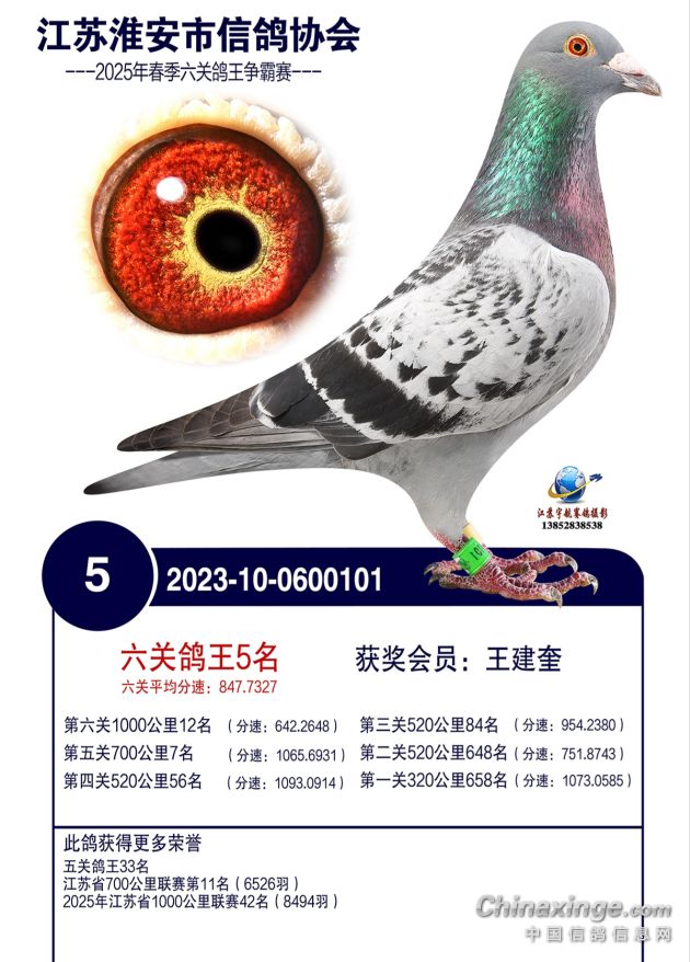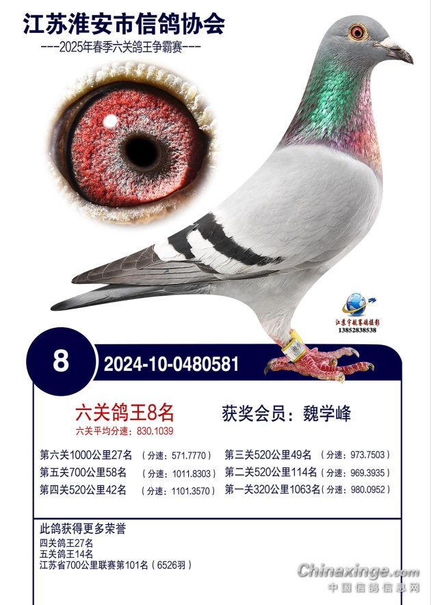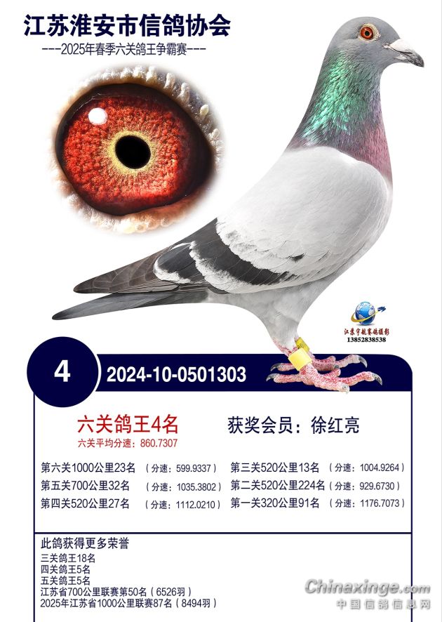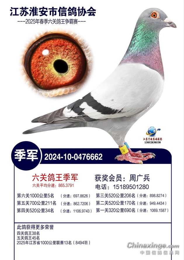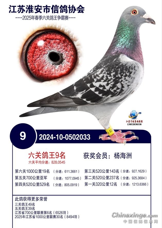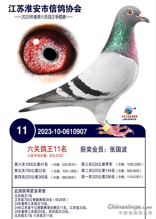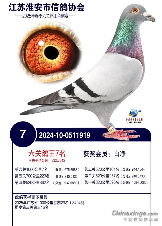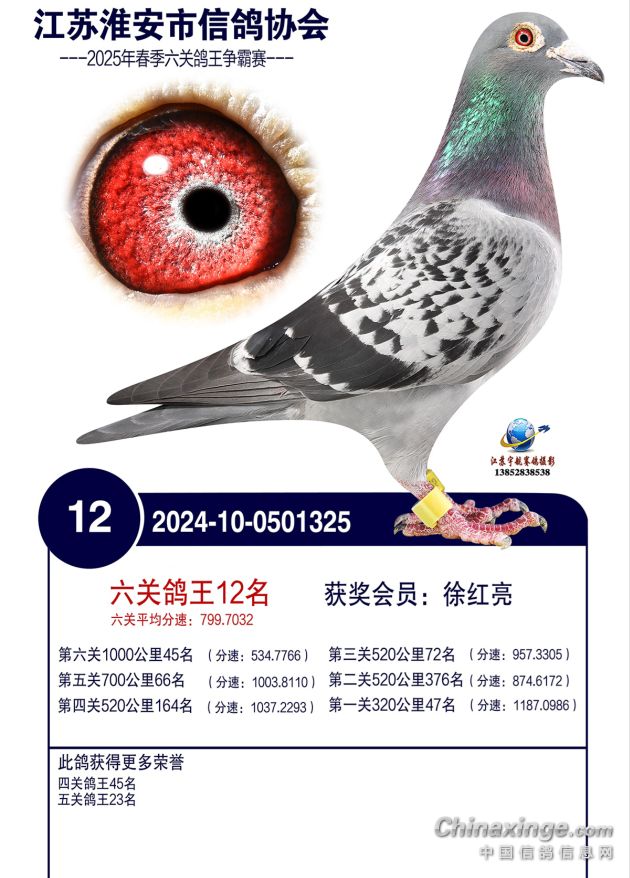 【第3553集】江苏淮安市信鸽协会2025年春季六关鸽王争霸赛前12名欣赏(因冠军、6名、10名没图片)。