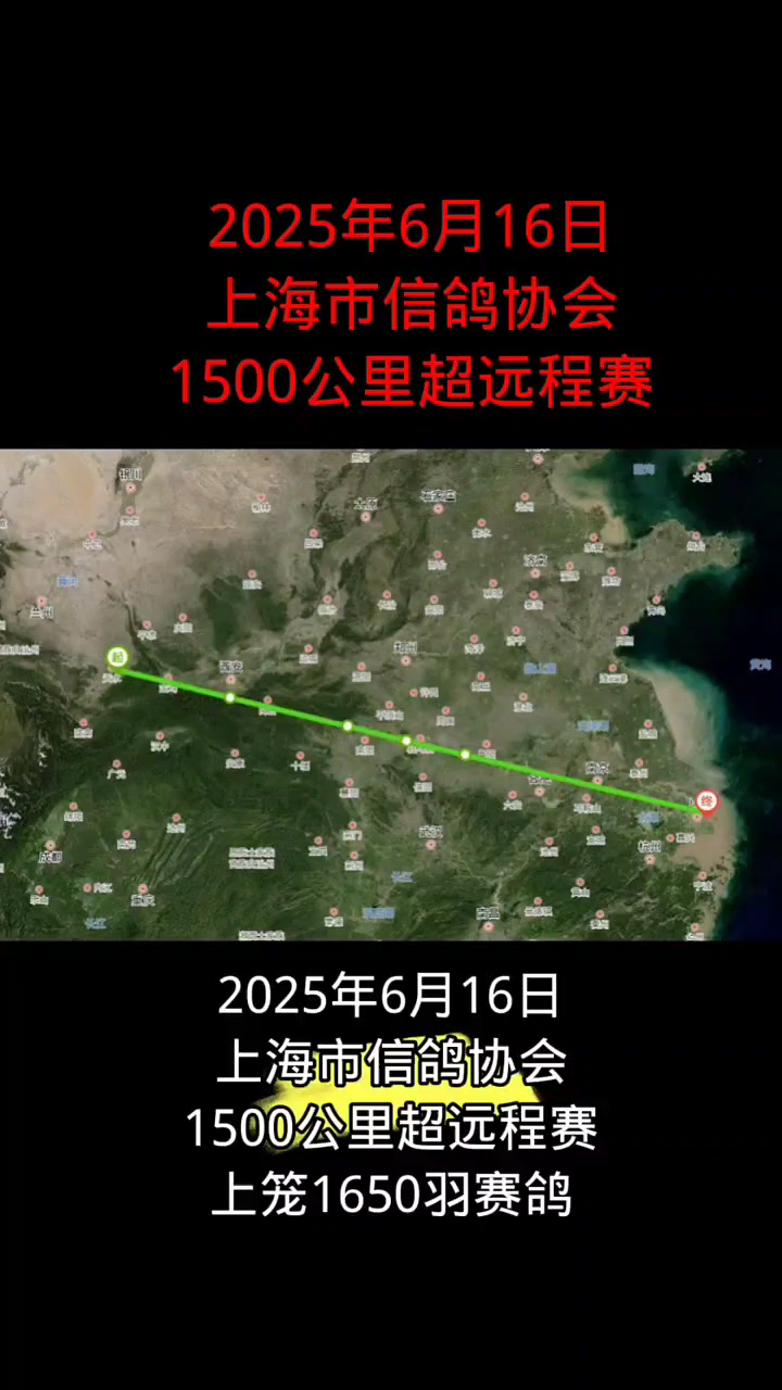 2025年6月16日,上海市信鸽协会,1500公里超远程赛,上笼1650羽赛鸽,于早晨6:20开笼