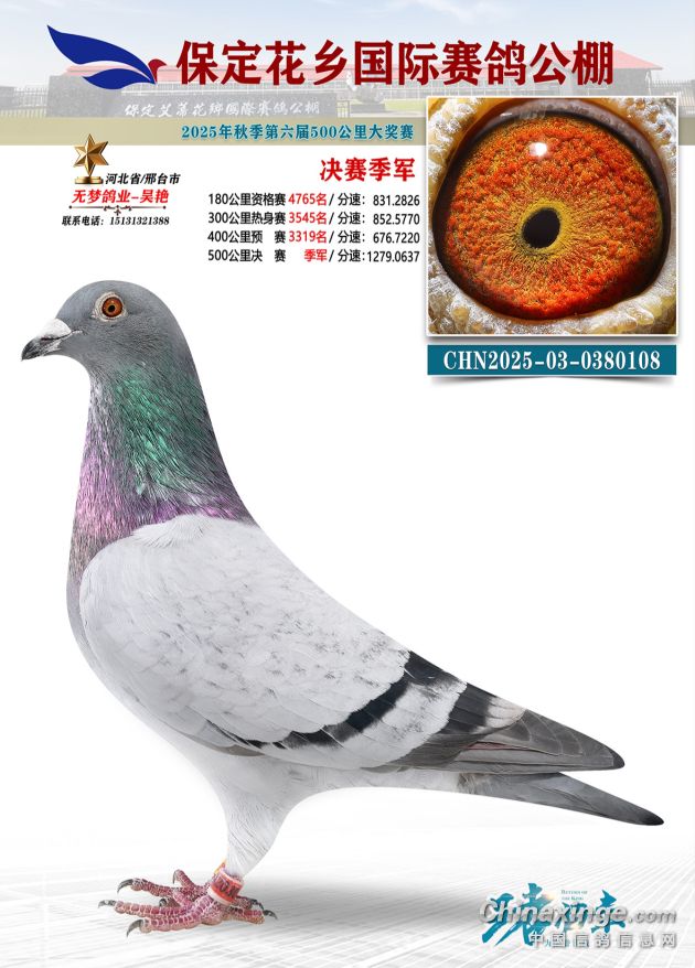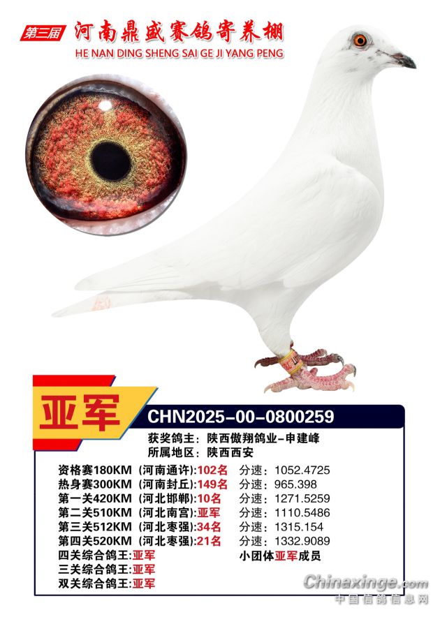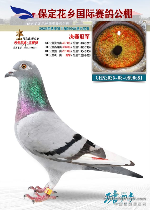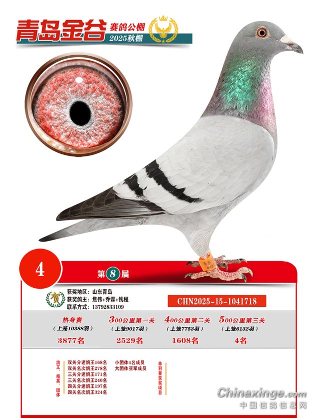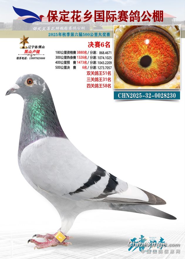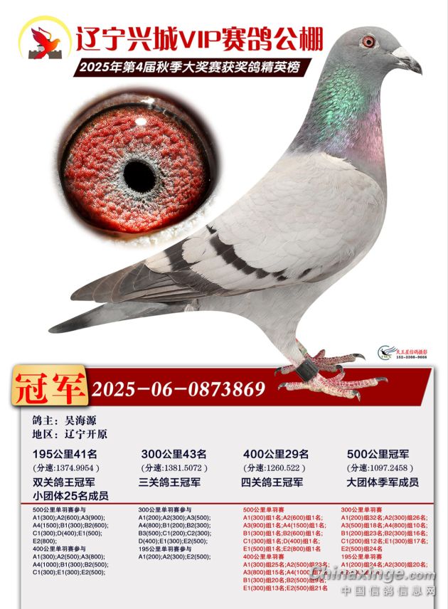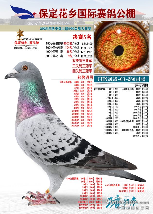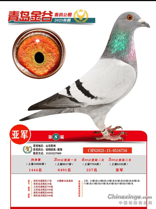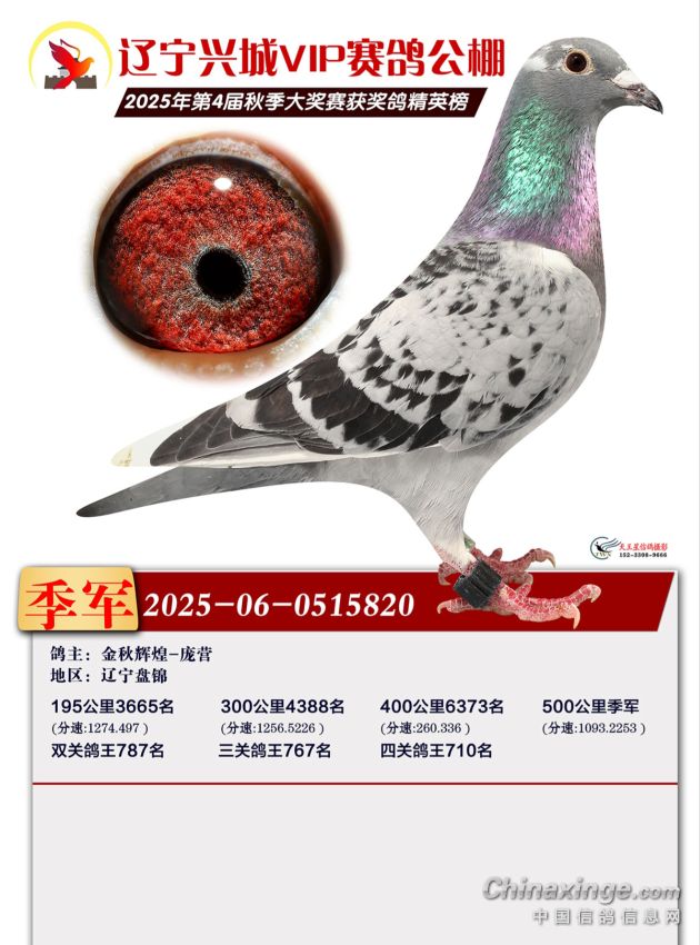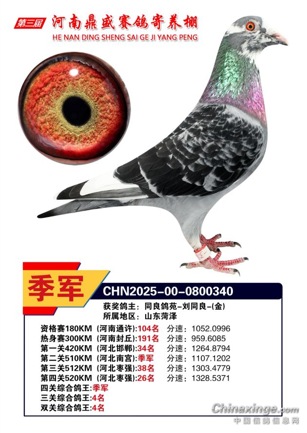 在另外一场普赛中,鸽友王炳选一羽环号为 0178022的鸽子在13:28:05.740率先归巢,空距490.717公里,分速为1248.3399米,获得冠军。事实上大赛的冠、亚、季、殿军、6位和普赛冠军应该是在同一时间一起归巢,足见鸽友王炳选鸽子的实力非凡,这样的成绩在今天的两场比赛中成为真正的亮点。