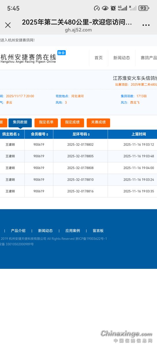 截止晚上20:00整,浙江省幼鸽大奖赛(温州市赛区)集鸽2119羽,共归巢413羽,归巢率为19.73%,另一场普赛集鸽1125羽归巢128羽,归巢率为11.38%,今天的两场比赛,难度之大,从归巢率就可以看出。