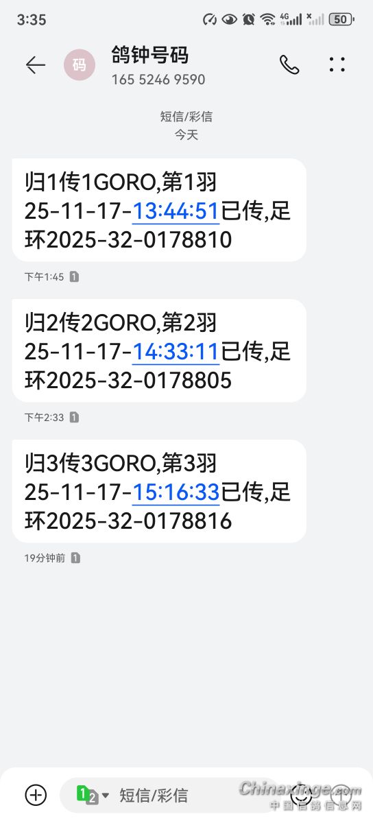 回来了三只,比昨天归巢率高一点。今天给没有回来的时间不多了,正常4点半左右就没有什么鸽子回来了。