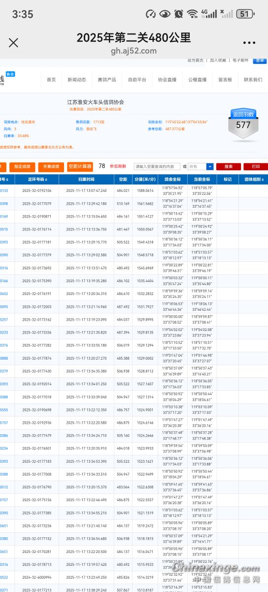 火车头特比环第二关480公里,于河北邢台清河8点03开笼,一路顺风4级,淮安阴,看来又是高分速,低归巢,预测1600分速,上笼1700多羽,今天能回来500只就算高归巢了。对于我来说,别人能放,我就也能放,对我有利的是15次路训12次恶劣天气,可能这种天气,对我来说是个机会。