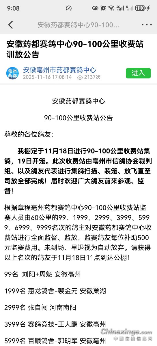 合肥志诚鸽舍 这样的幼鸽大奖赛很好,记得十几年前省市就有这个项目,现在幼鸽都是特比环赛,逼着你买特比环,幼鸽参赛就跟成鸽一起混合赛了。