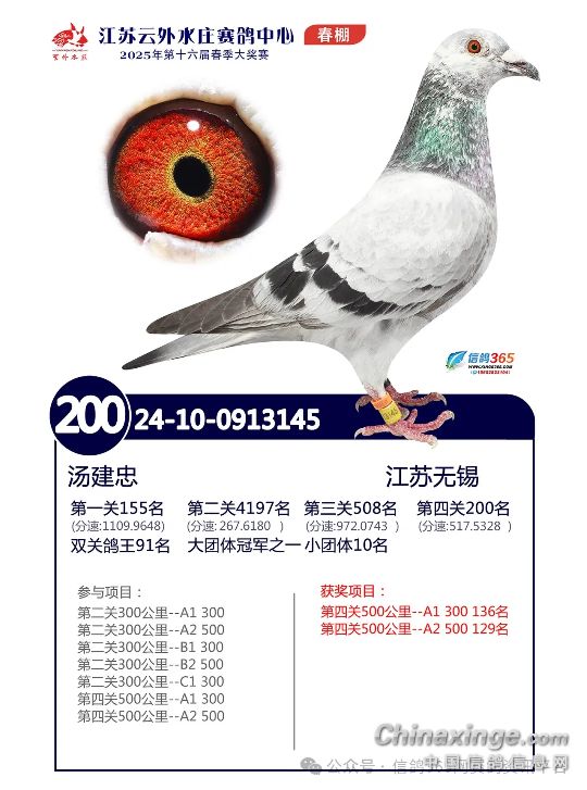 春棚第一选手是绛雄和浙江雌的小鸽子,第二选手才拍的云外春棚200名雌和徐大师的2019灰。第三选手大铭鸽694对同父异母的妹妹云外春棚487。第四选手二名母对小白条。两只云外春棚鸽子还没有回来,雌雄莫辨。总感觉200名是雌,487是雄。家里好雌太少了。去年秋赛出小鸽子进奖的,第一是浙江雌,第二是芦大师灰大雌,第三是寄养棚雌,试试鸽子的一个是药都天落和山东特比。