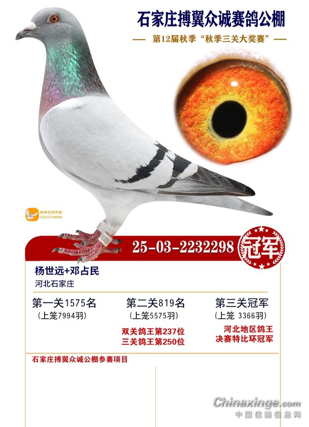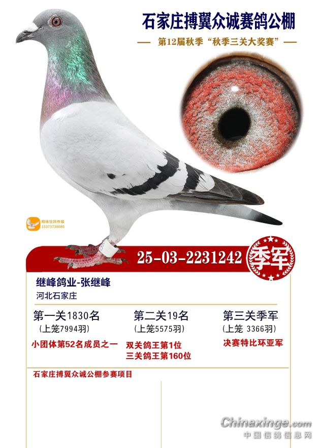 秋赛,亮剑! •  石家庄搏翼众诚赛鸽公棚第12届秋季三关大奖赛决赛前九位欣赏。