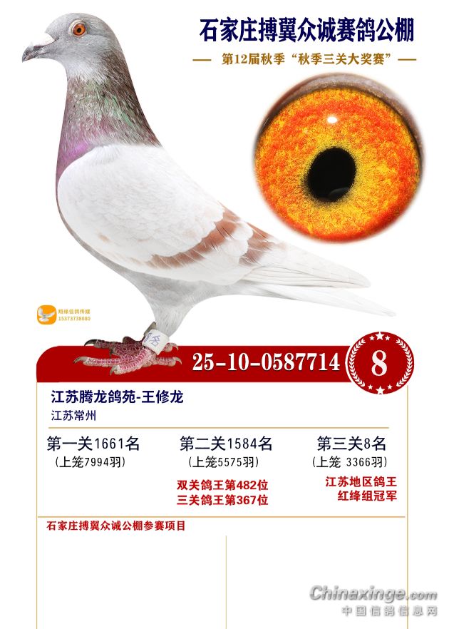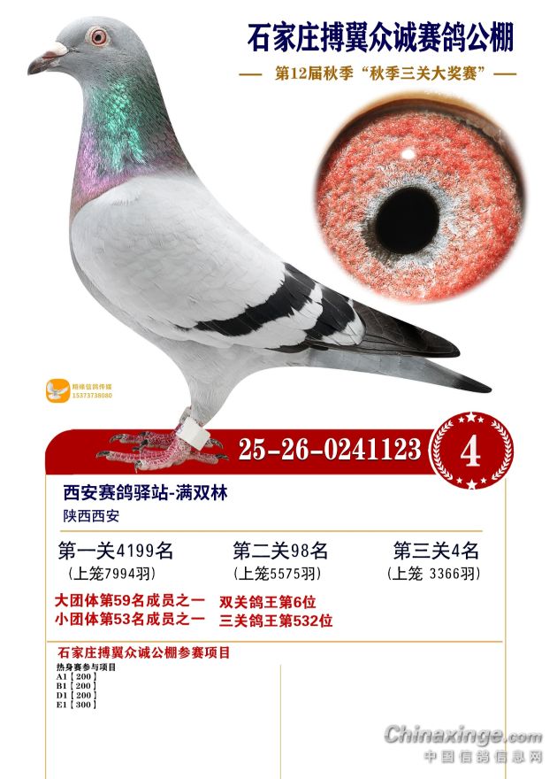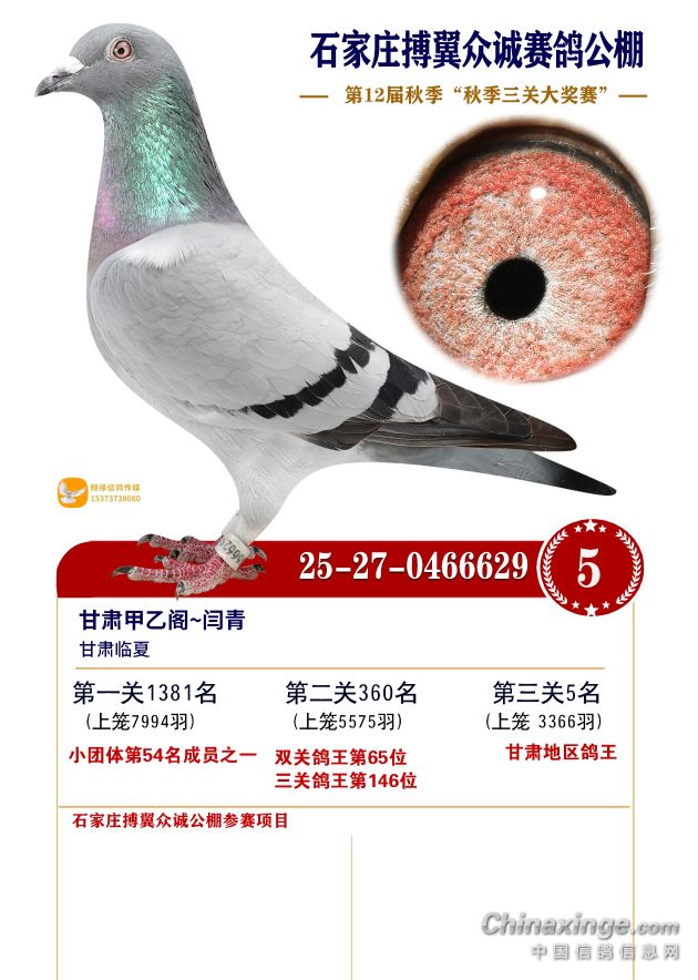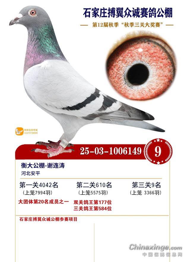 秋赛,亮剑! •  包头爱亚卡普公棚2025年秋季三关鸽王大奖赛决赛前九位鸽眼欣赏。
