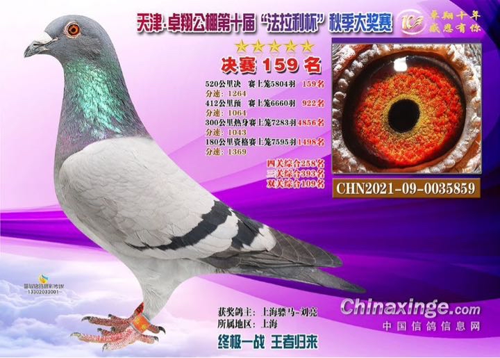 简介:2004年获得飚友赛鸽俱乐部470公里三区总冠