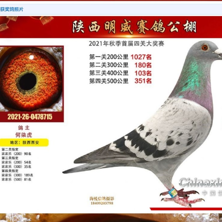 河北鹿泉鑫羽鸽俱乐部获奖鸽拍卖