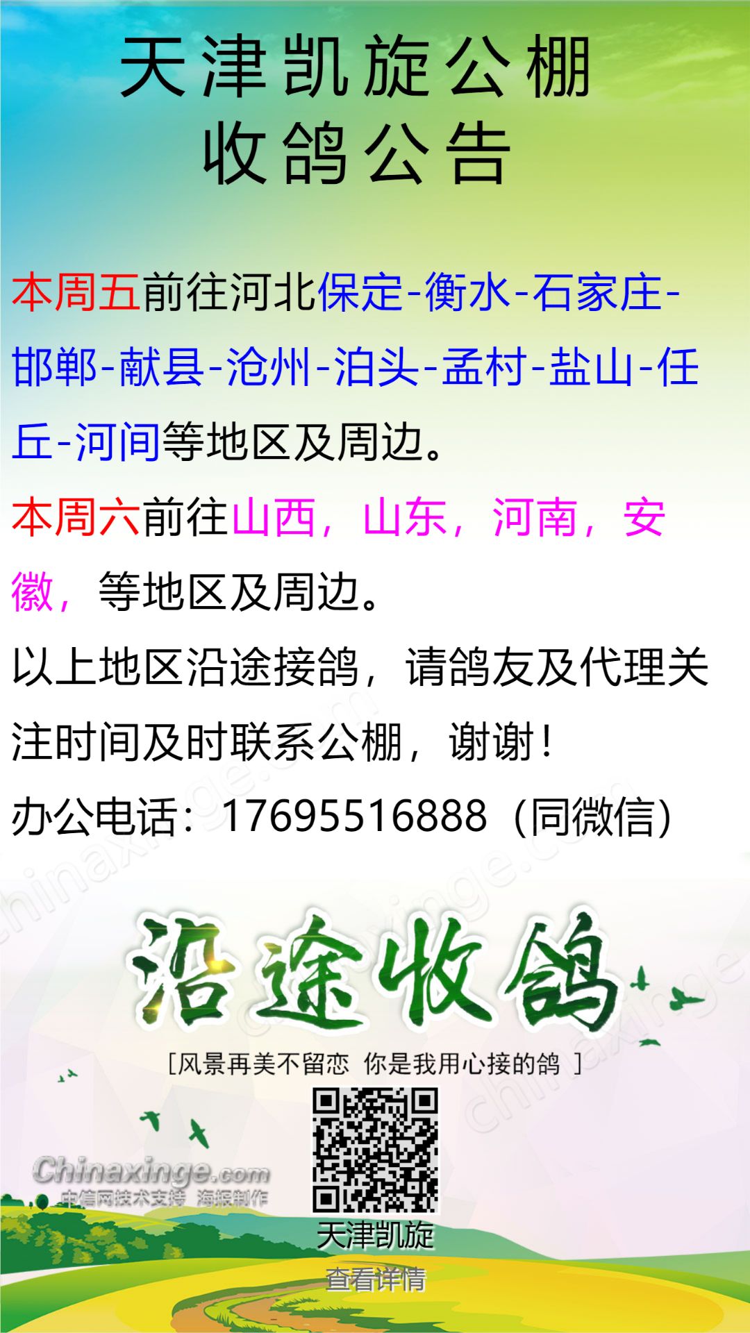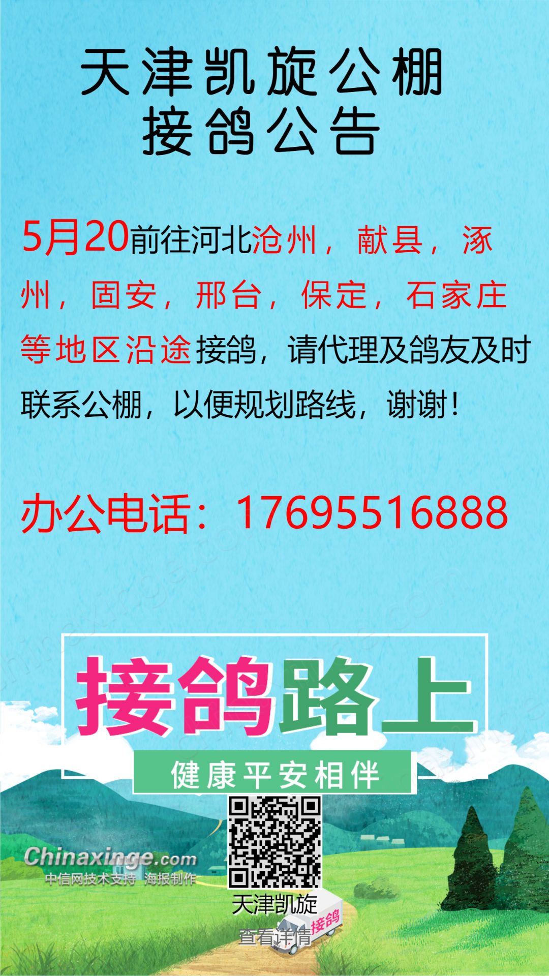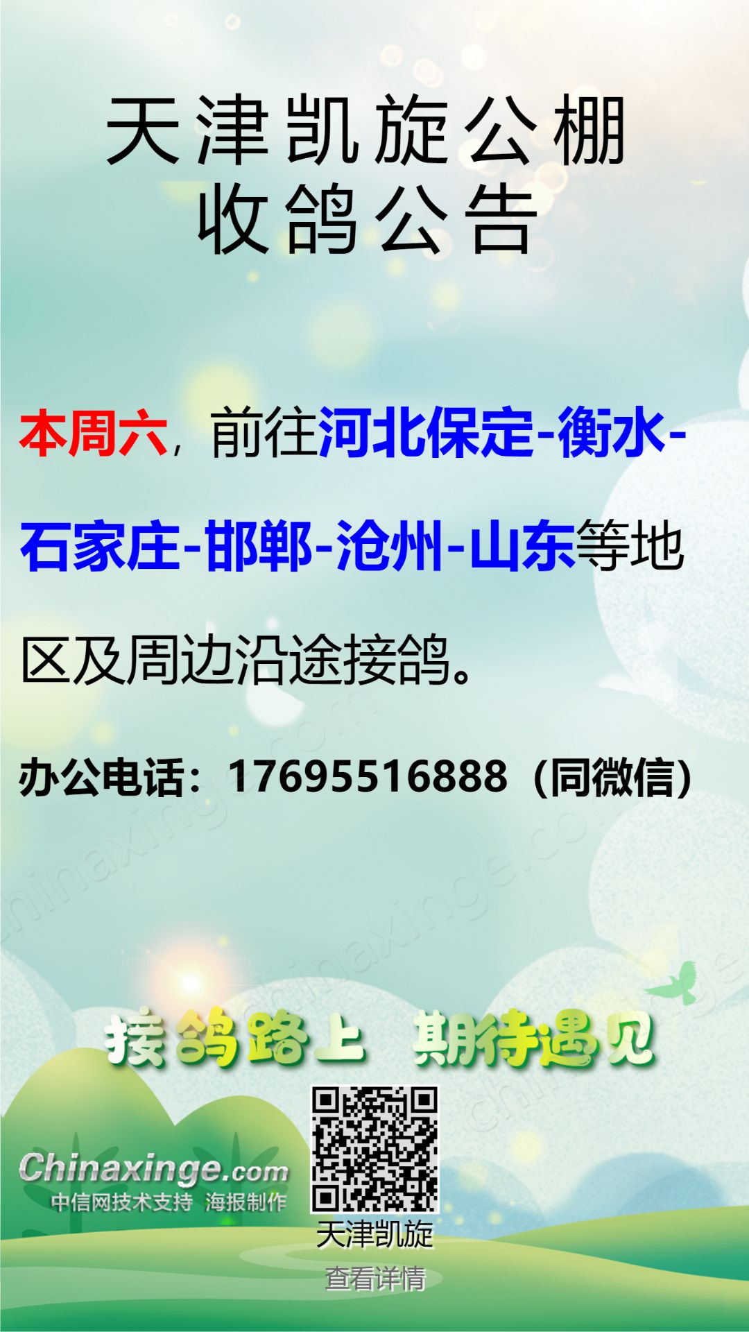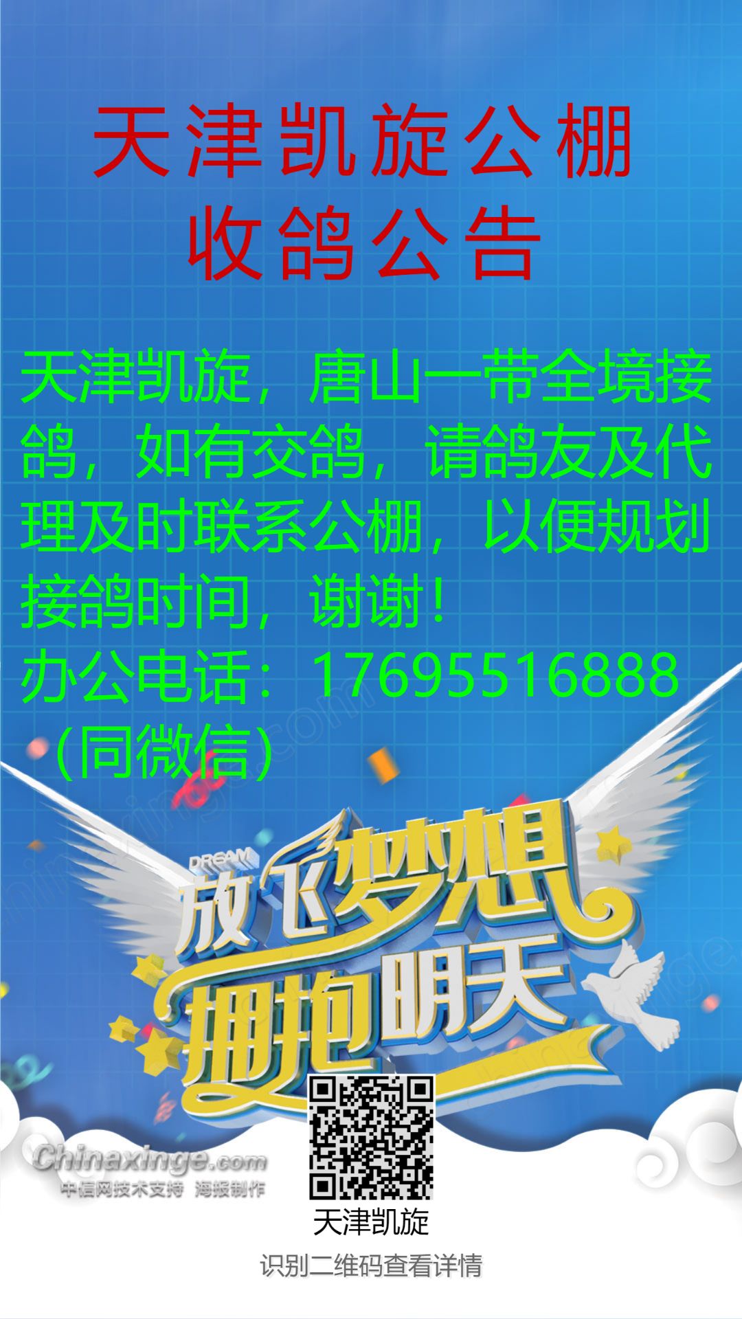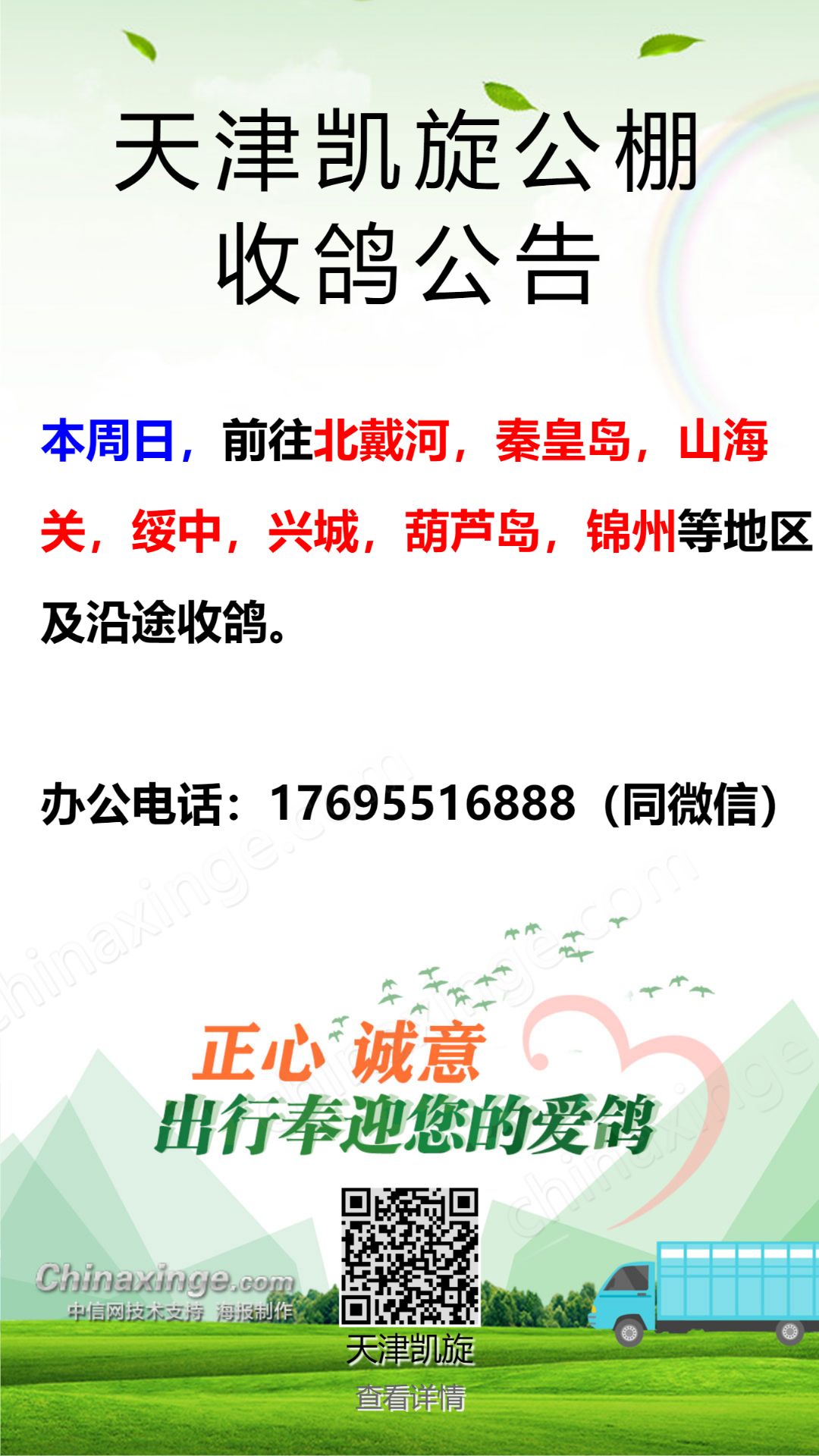 天津凯旋公棚唐山接鸽公告