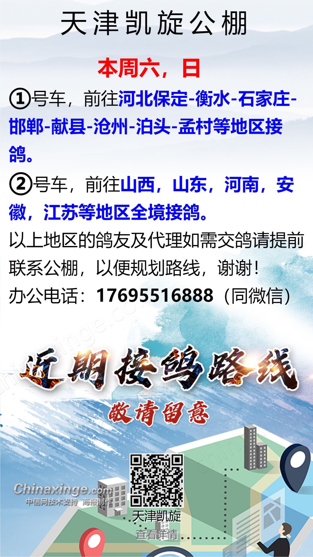 天津凯旋公棚5月20日接鸽路线
