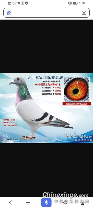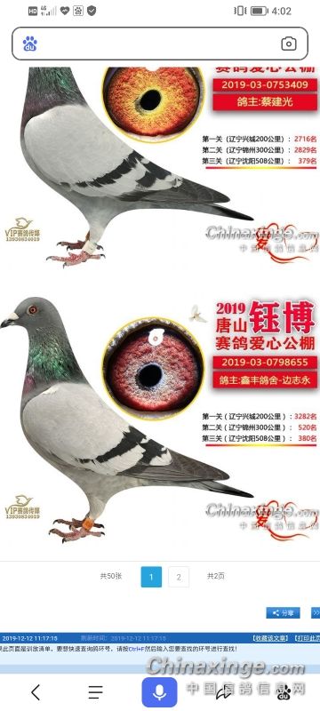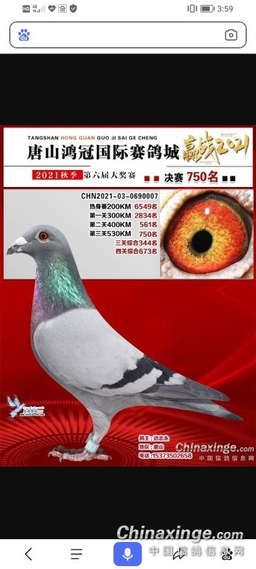 河北鹿泉鑫羽鸽俱乐部获奖鸽拍卖