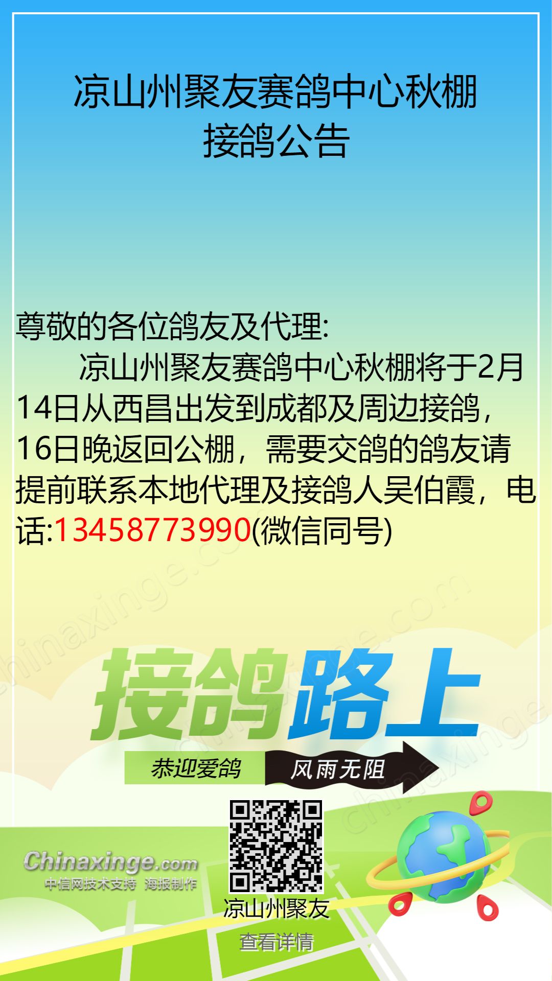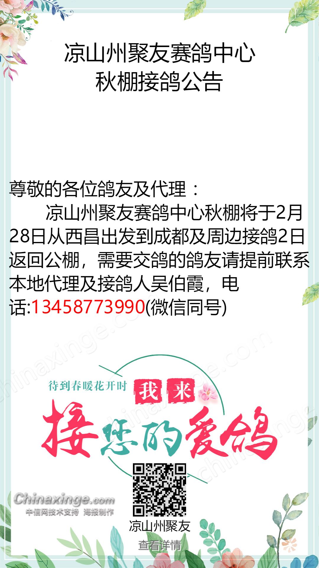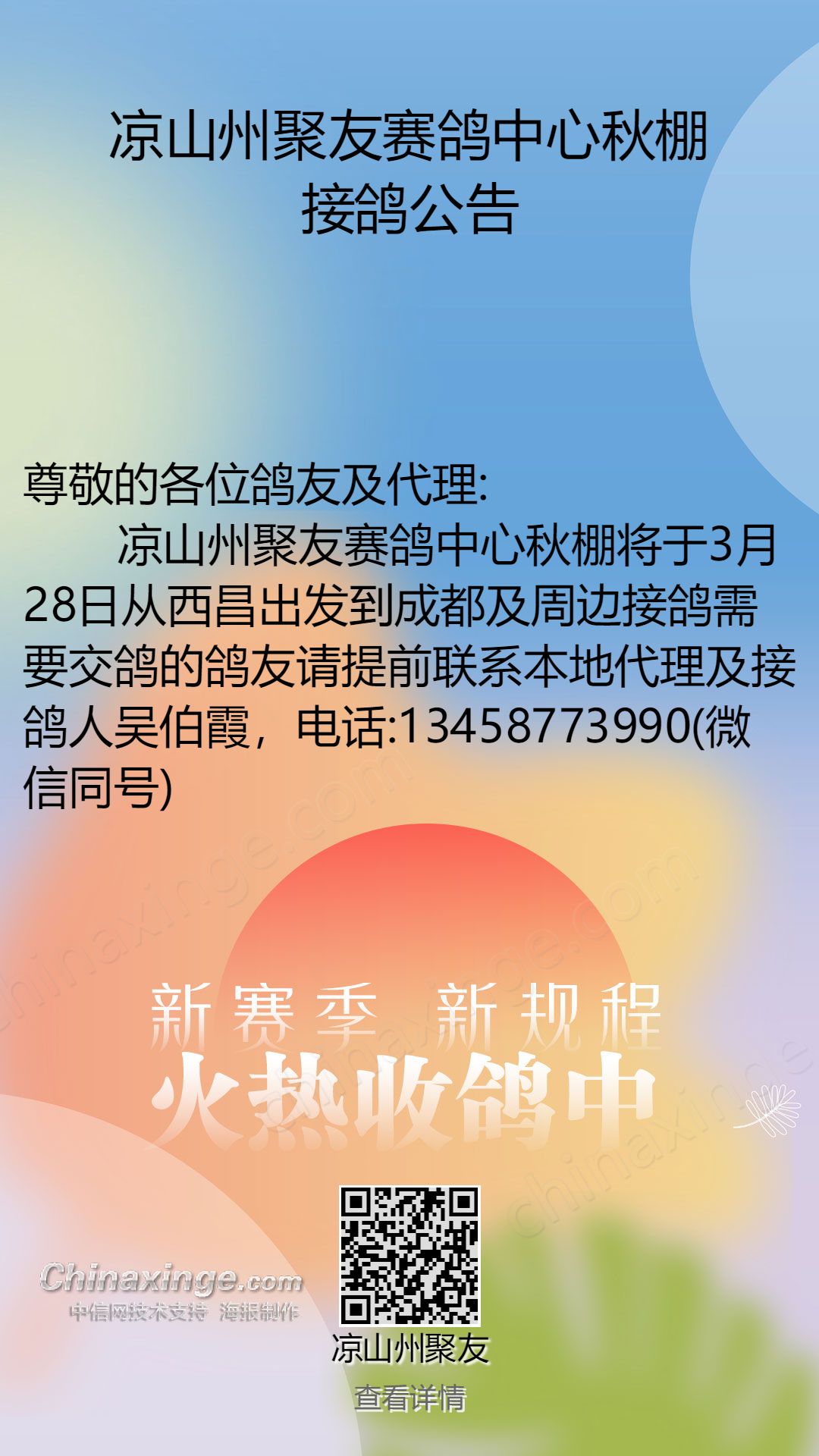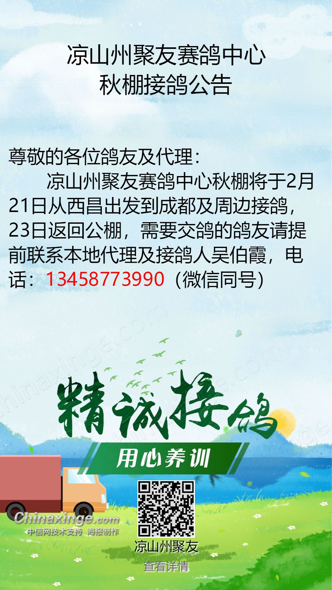 凉山州聚友赛鸽中心(秋棚)接鸽公告