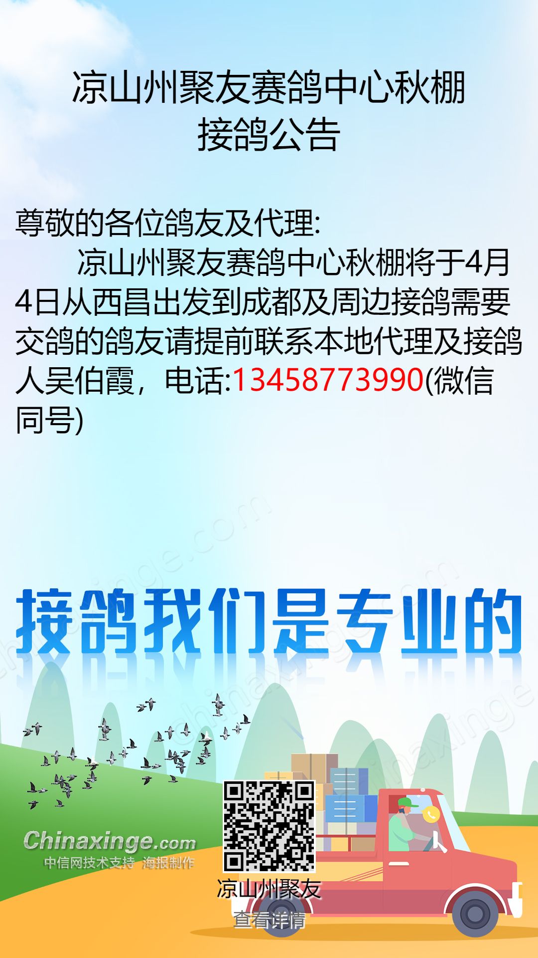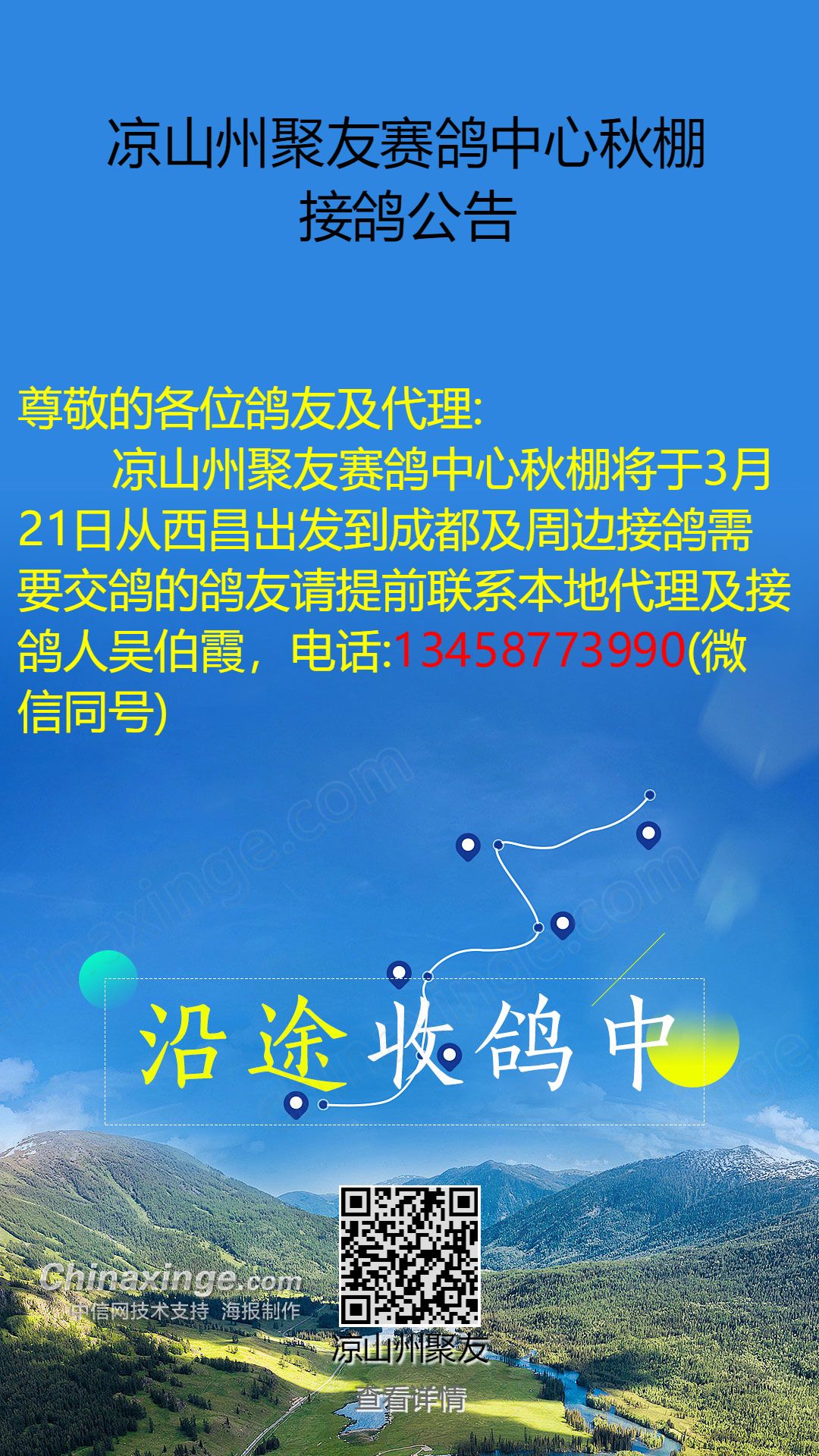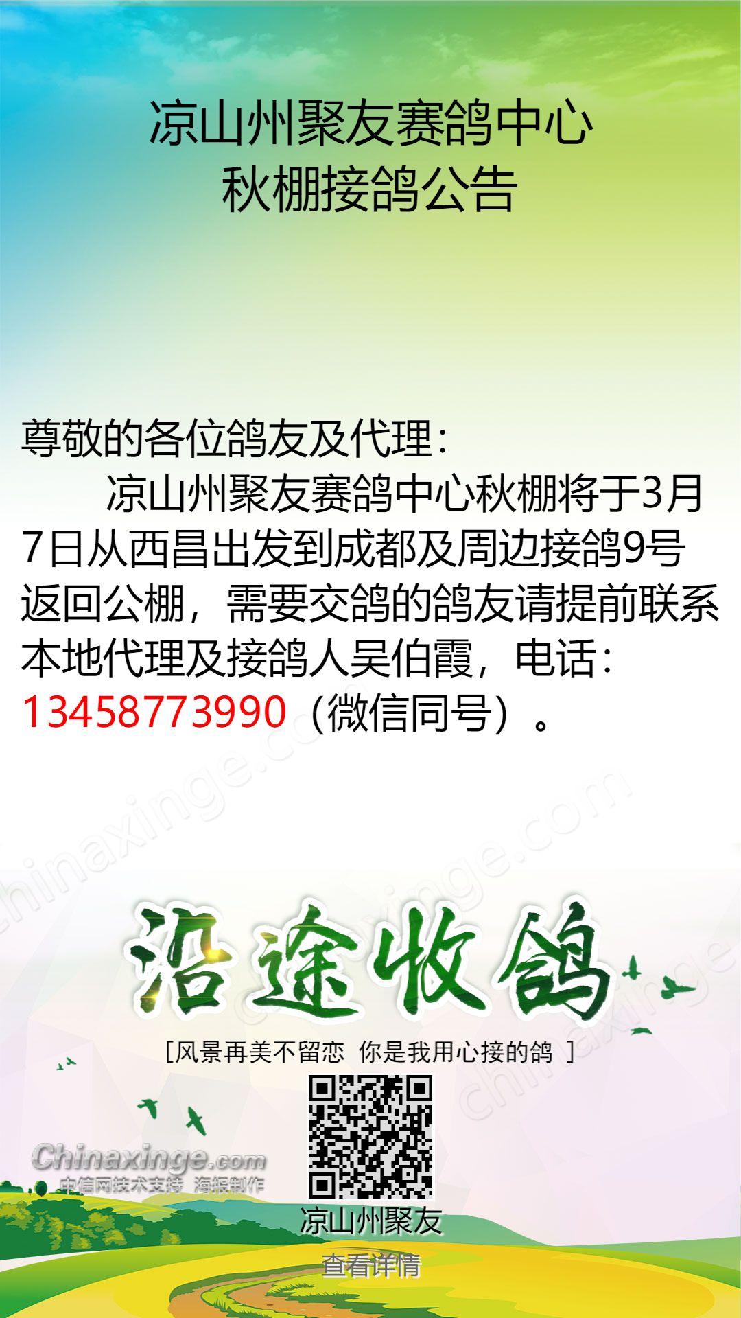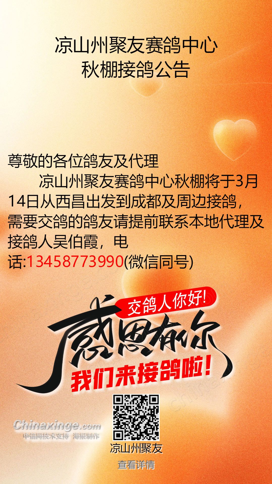 凉山州聚友赛鸽中心(秋棚)接鸽公告