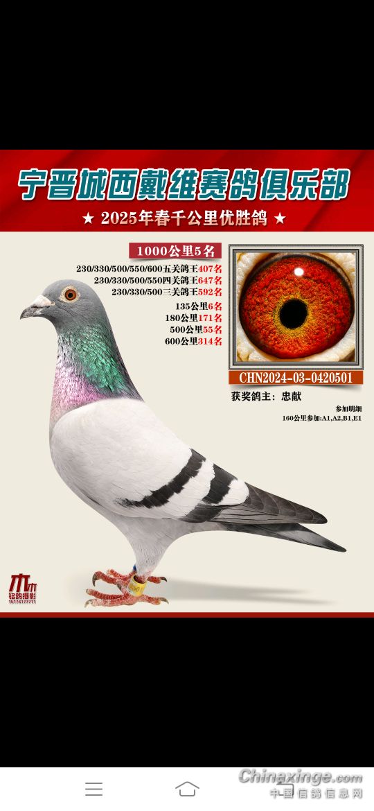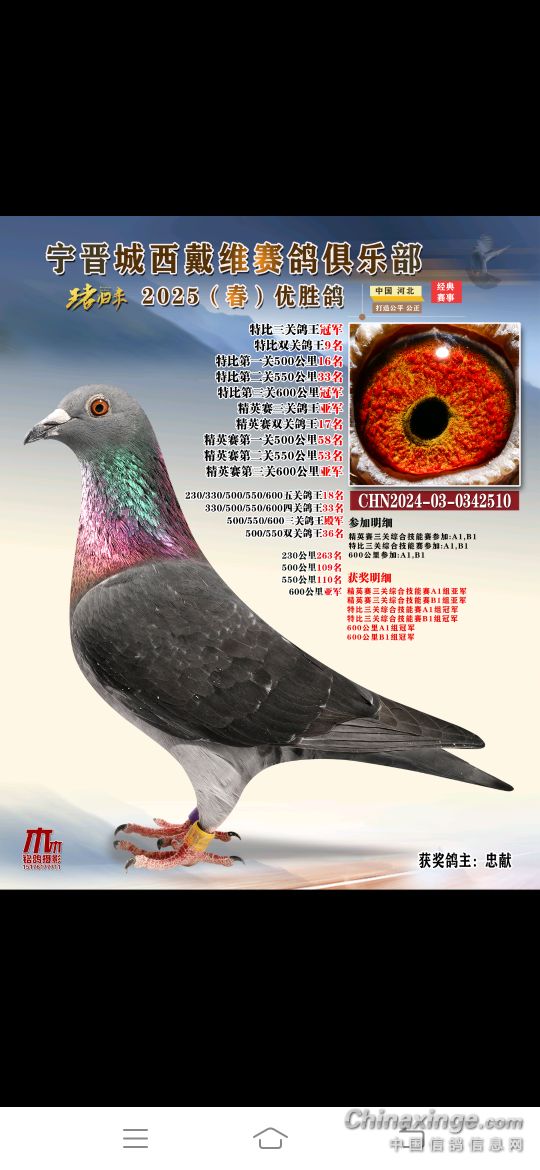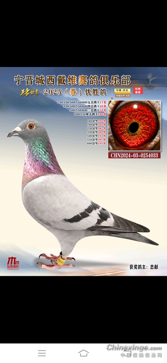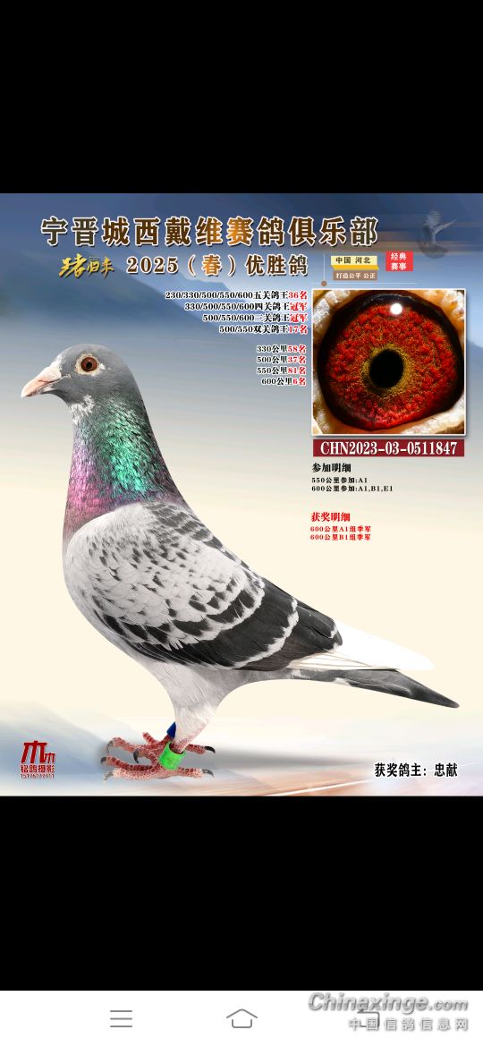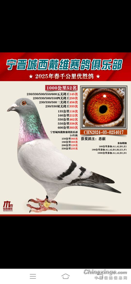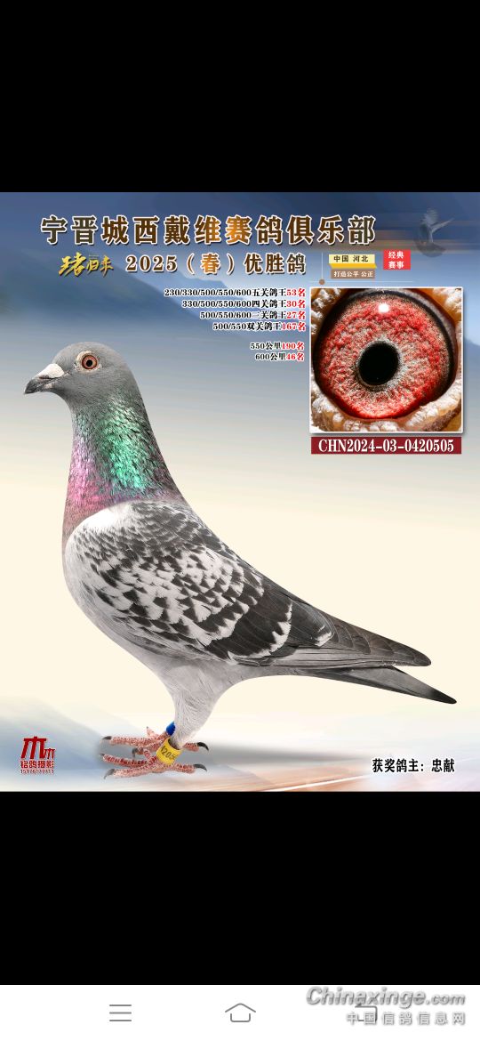 2025年春赛获奖鸽4月18号19号陆续结拍
