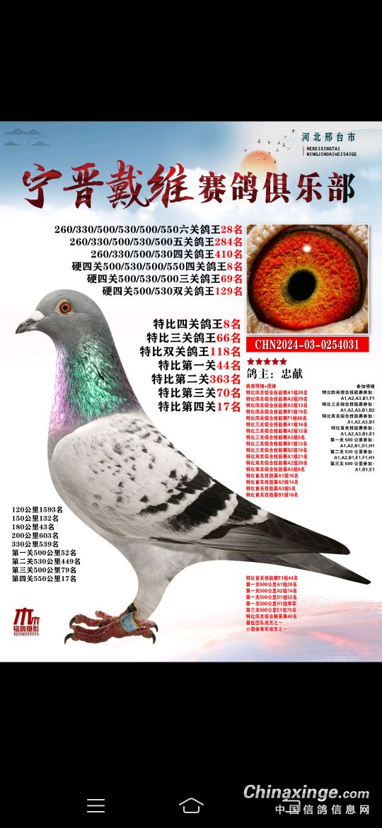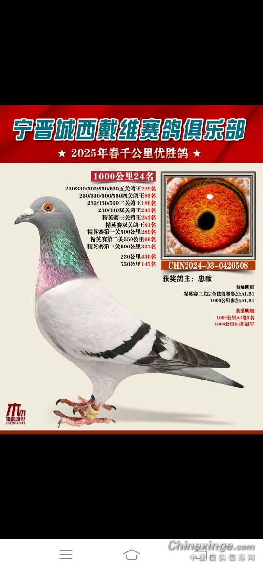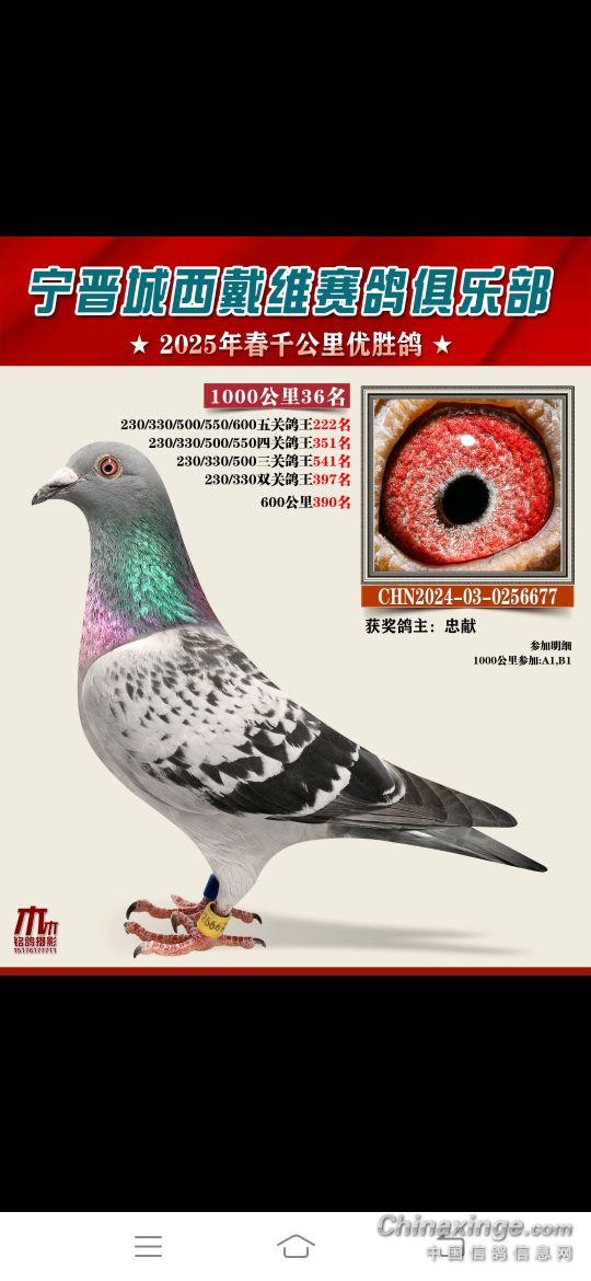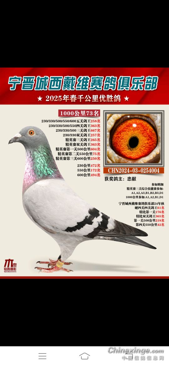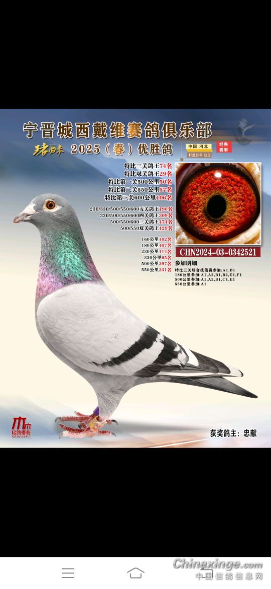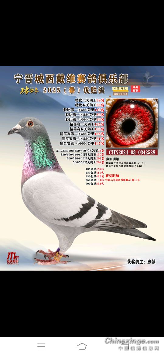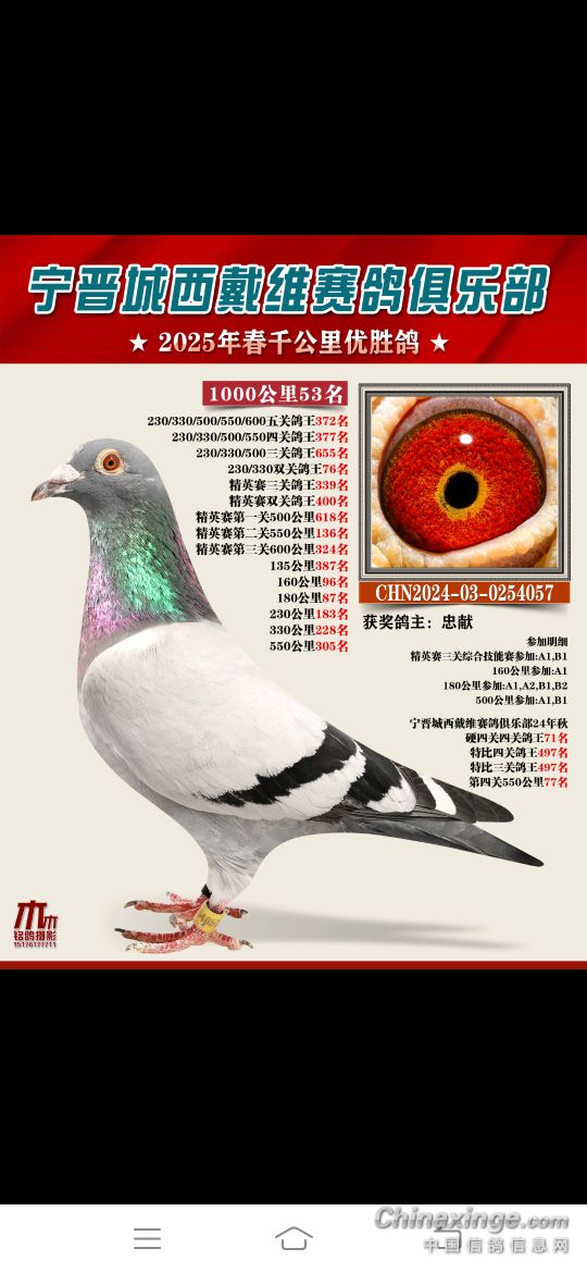 2025年春赛获奖鸽4月18号19号陆续结拍