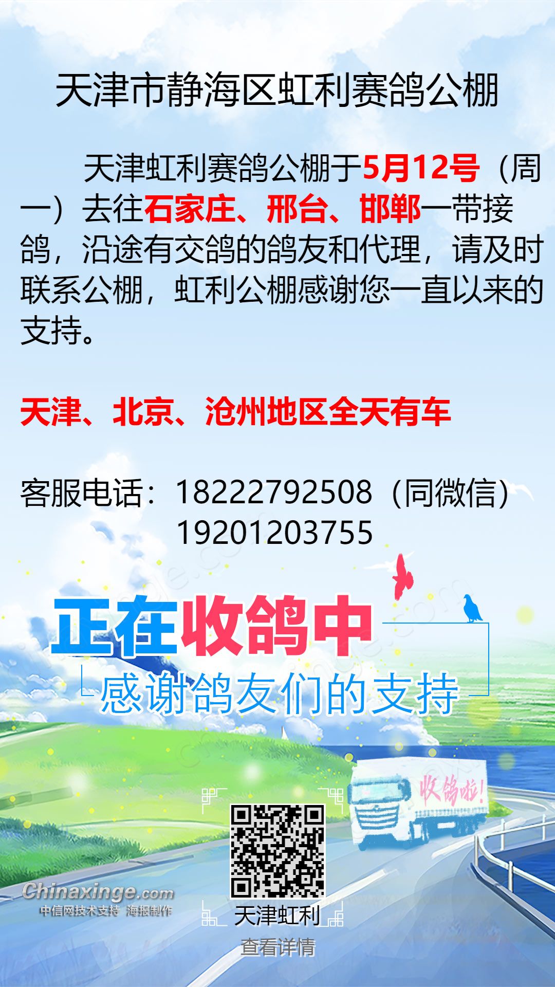 5月12号(周一)去往石家庄、邢台、邯郸一带接鸽