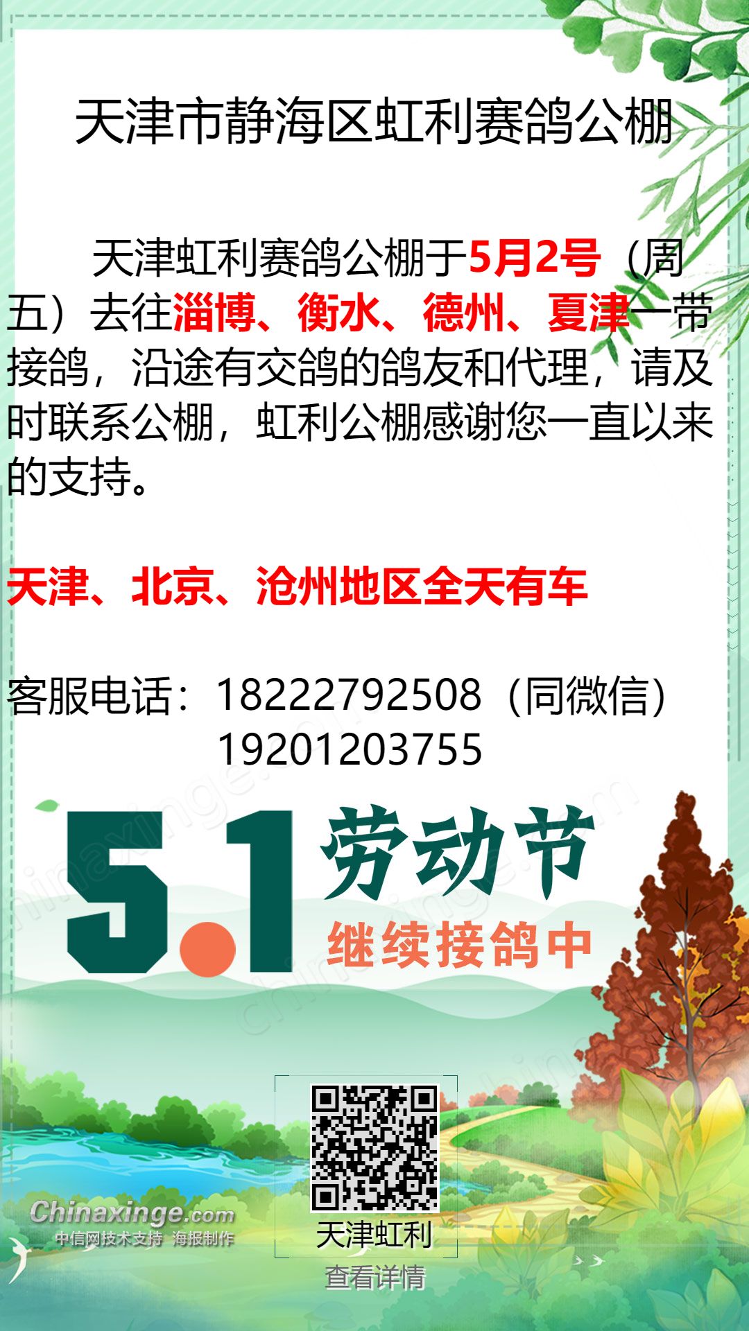 5月2号(周五)去往淄博、衡水、德州、夏津一带接鸽