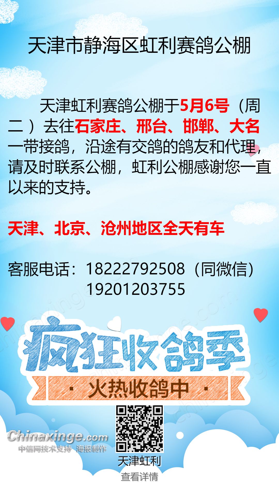 5月3号(周六)去往石家庄、廊坊、保定一带接鸽