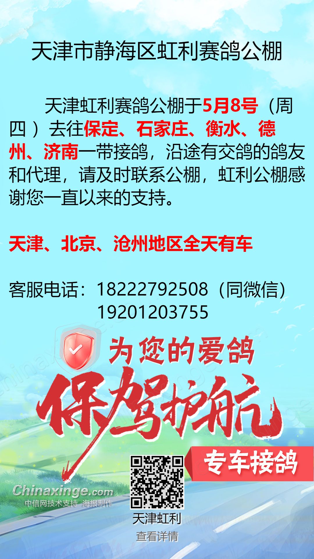 5月8号(周四 )去往保定、石家庄、衡水、德州、济南一带接鸽