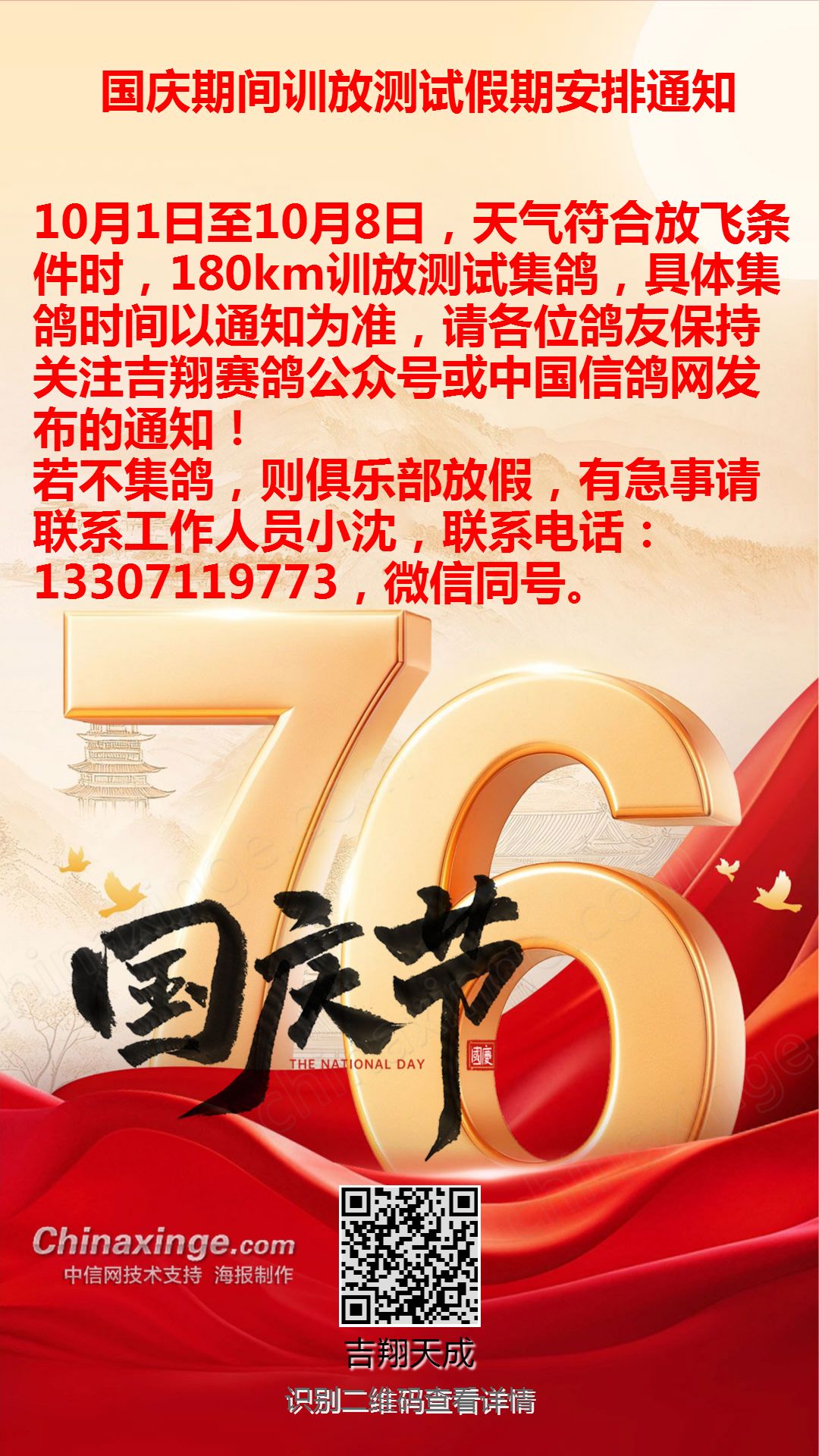 2025吉翔赛鸽国庆期间,训放测试、假期安排通知