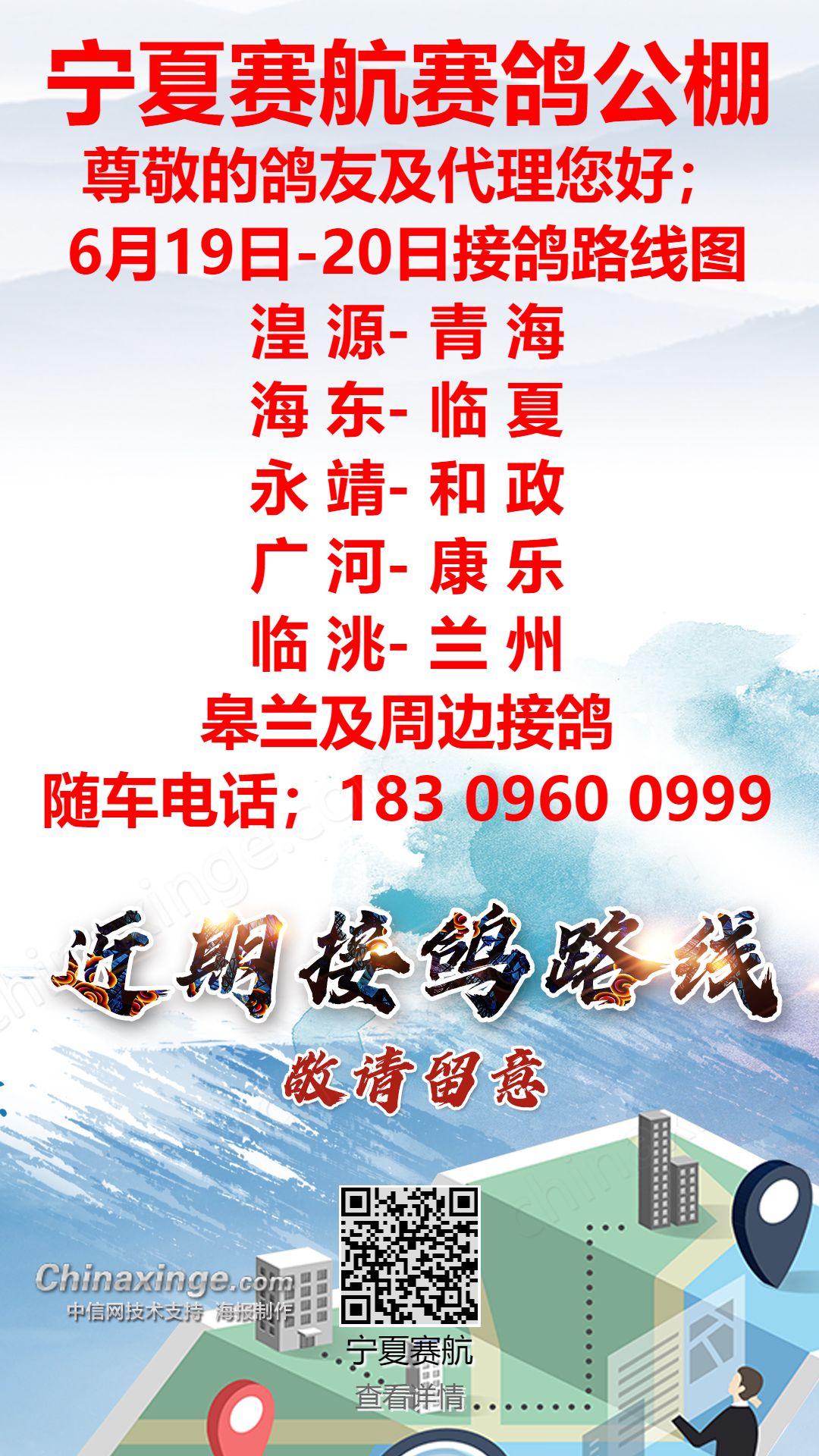 宁夏赛航赛鸽公棚6月19日-20日接鸽路线图
