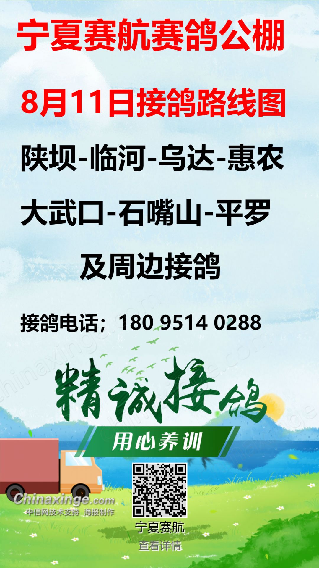 宁夏赛航赛鸽公棚8月11日接鸽路线图