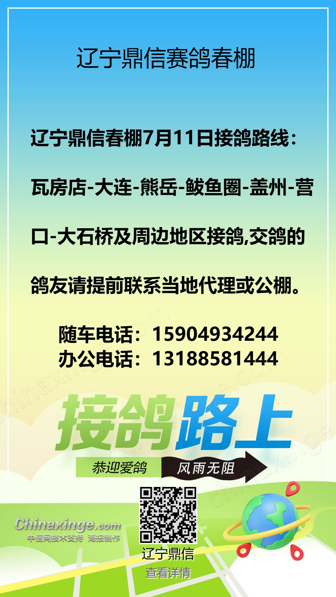 辽宁鼎信春棚:7月15日朝阳方向接鸽路线