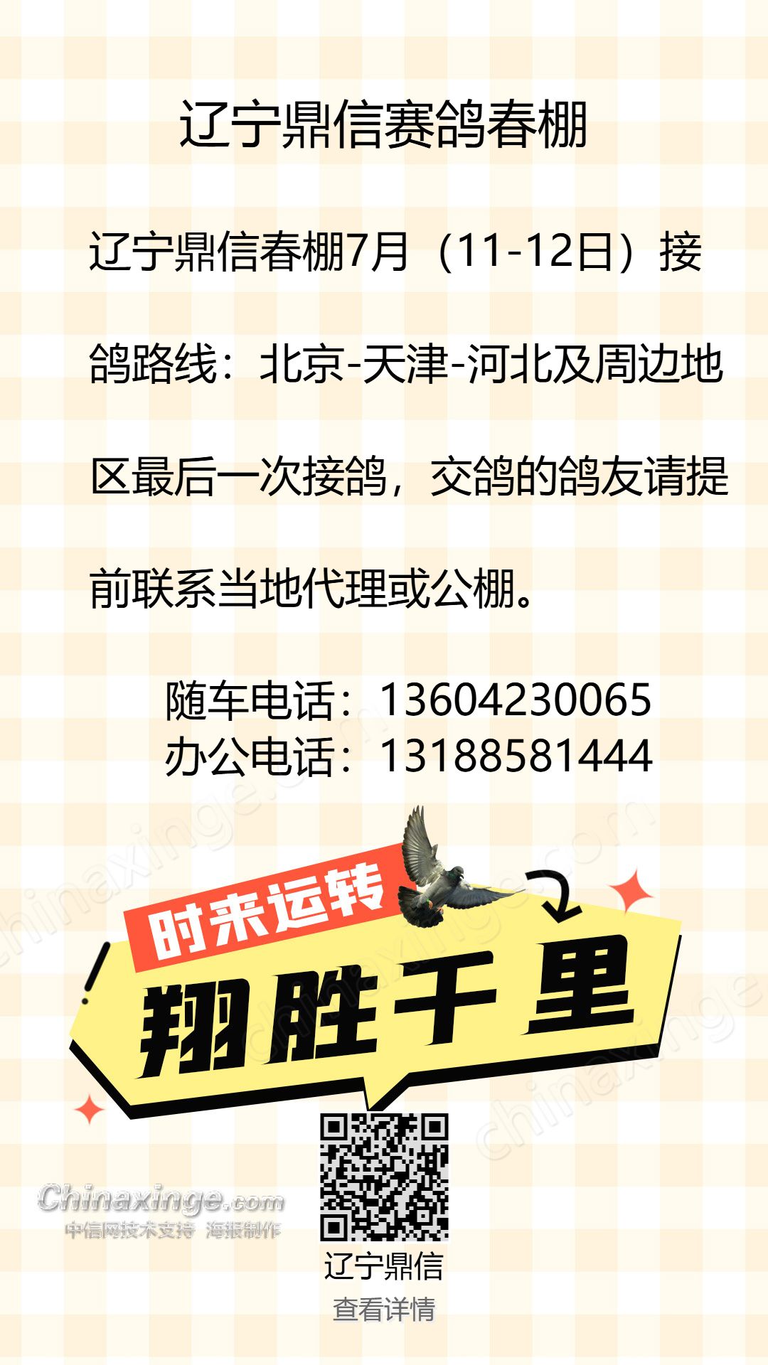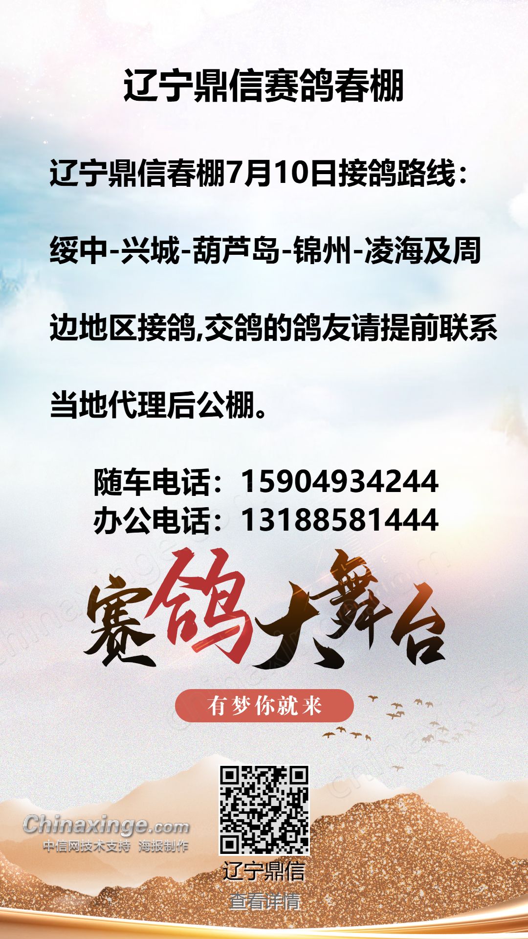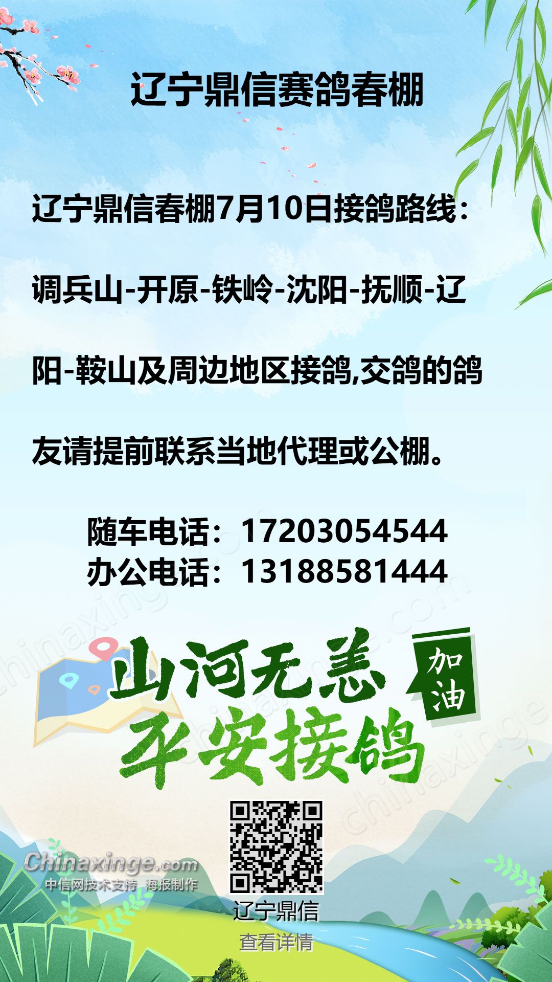 辽宁鼎信春棚:7月(11-12日)北京天津河北方向接鸽路线