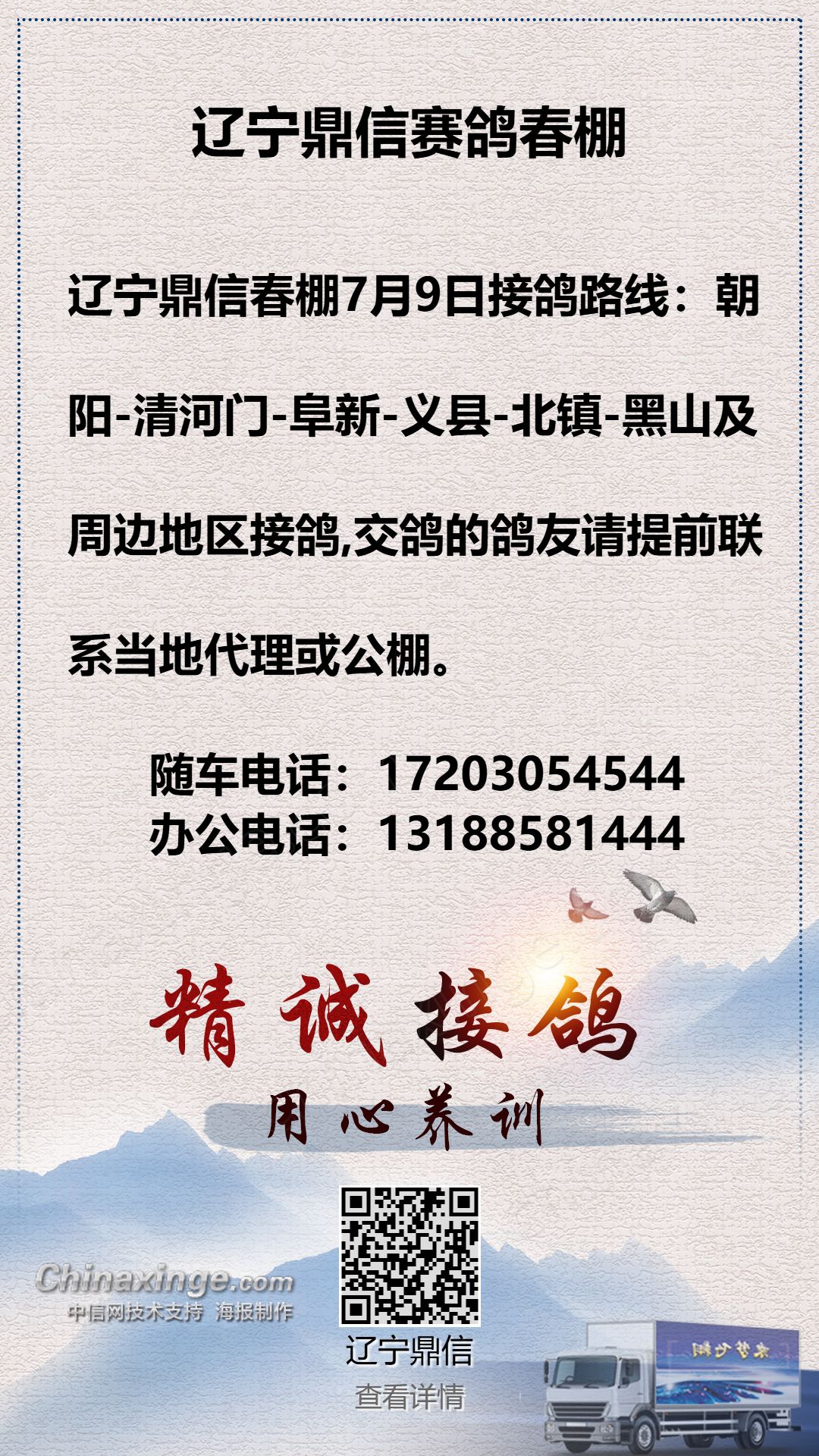 辽宁鼎信春棚:7月13日朝阳方向接鸽路线