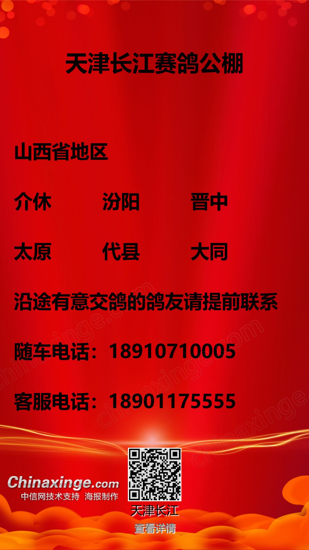 天津长江赛鸽公棚6月9日山西省地区接鸽路线