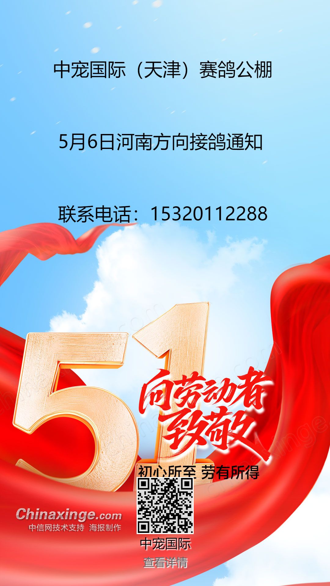 中宠国际(天津)赛鸽公棚5月6日河南方向接鸽通知