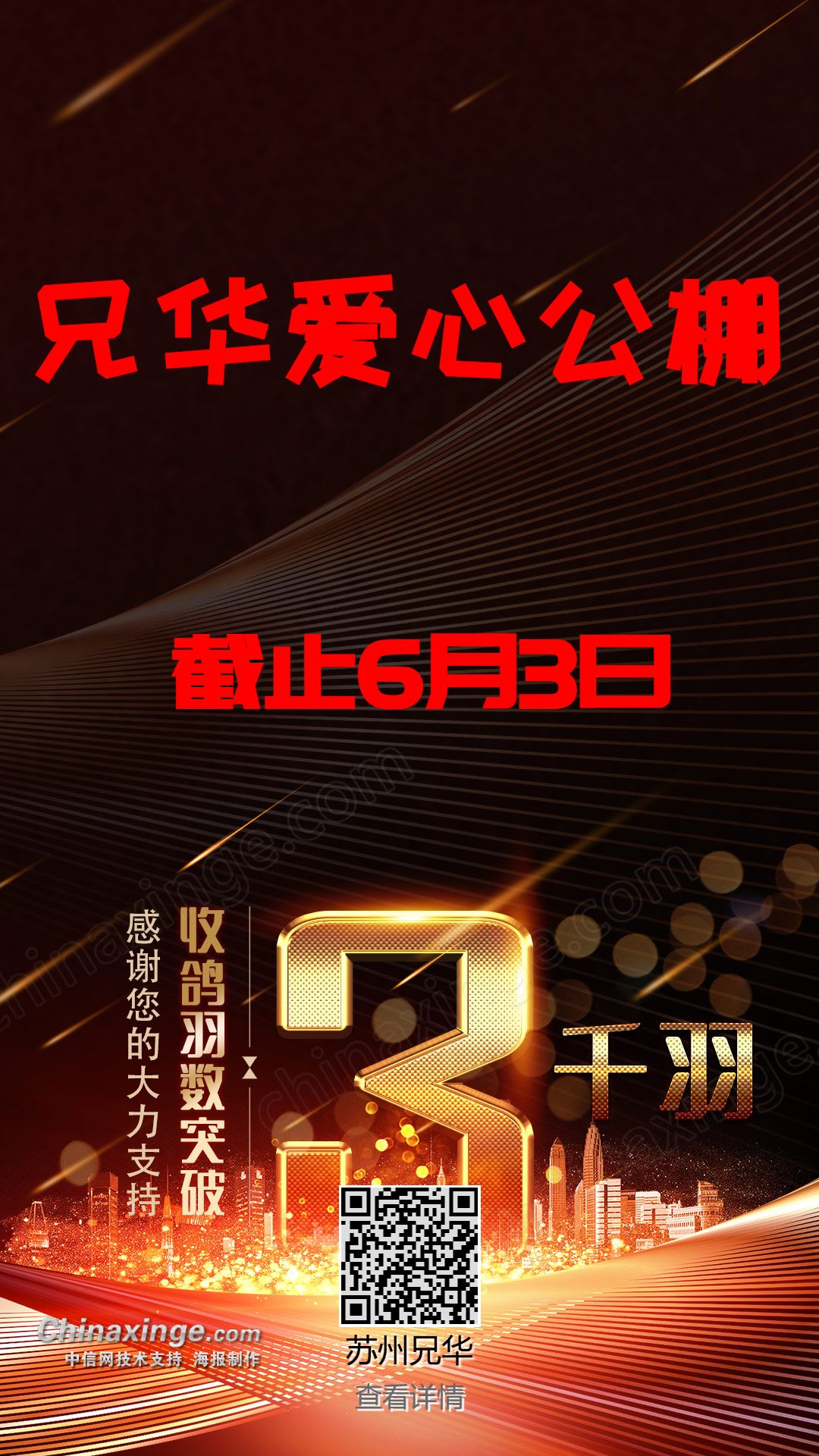 热烈祝贺兄华爱心公棚截止7月5日收鸽突破9000羽!