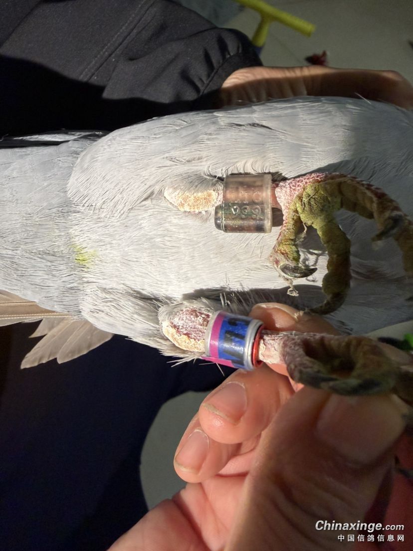大家好,今天见到一只这样的鸽子,有没有知道这是谁的鸽子,还要不要,定位器上是LTC999