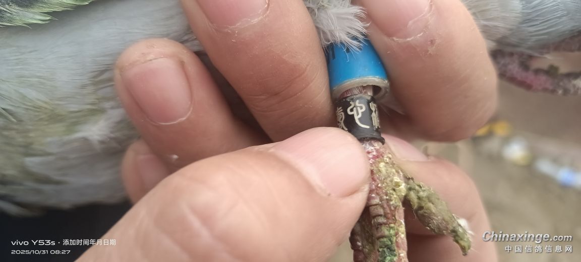 发表了提问 我爱我的信鸽 海上抓了一只天落环号是外文!有认识是哪里的鸽子...