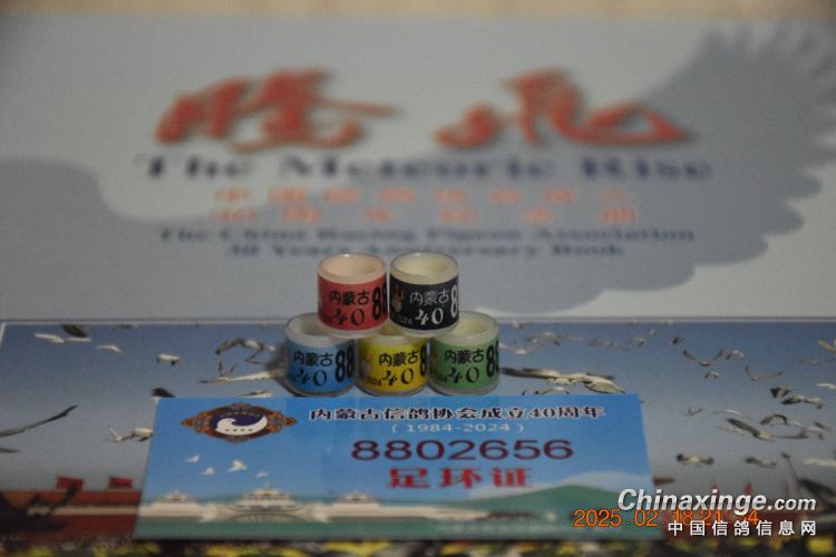 岁月像是一条河流:左岸铭记,右岸前行;中间流淌的是青春的忧伤与欢乐交织成歌。 PS:中国信鸽协会40周年纪念足环、河南省信鸽协会40周年纪念足环、内蒙古信鸽协会40周年纪念足环