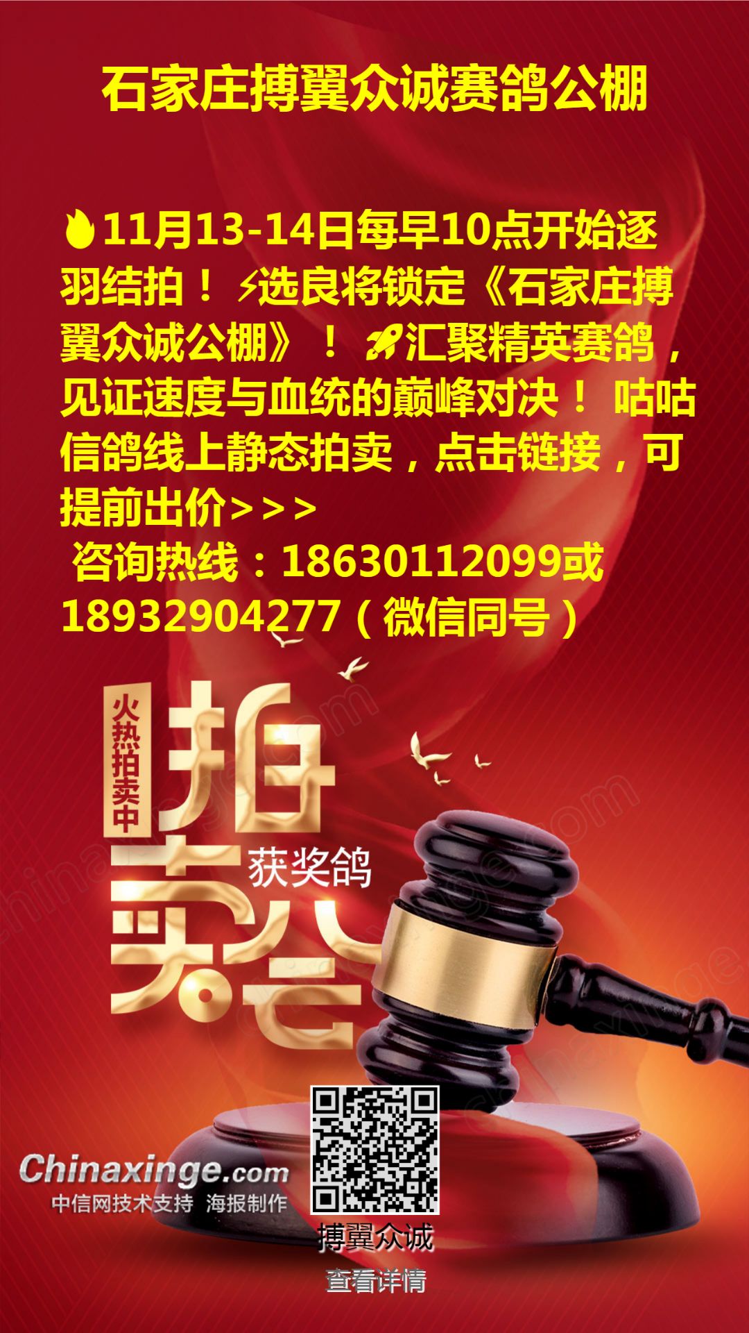 石家庄搏翼众诚公棚-加站赛获奖鸽拍卖通知