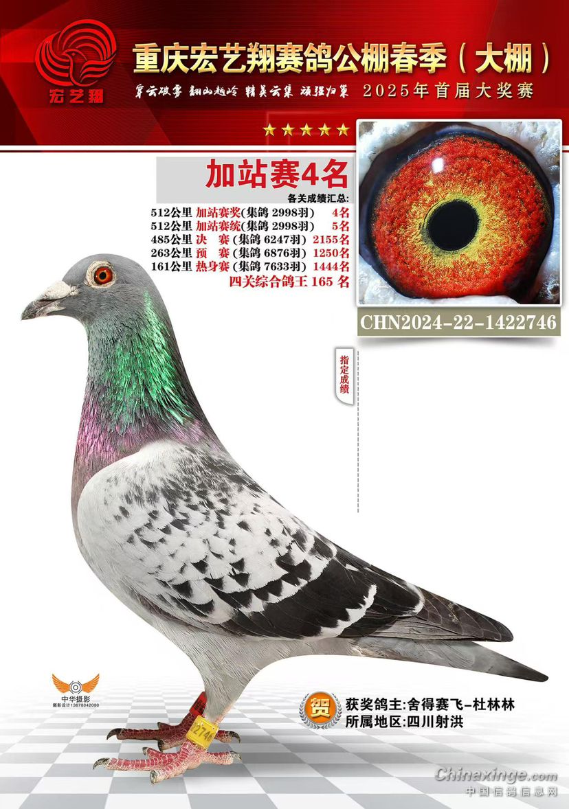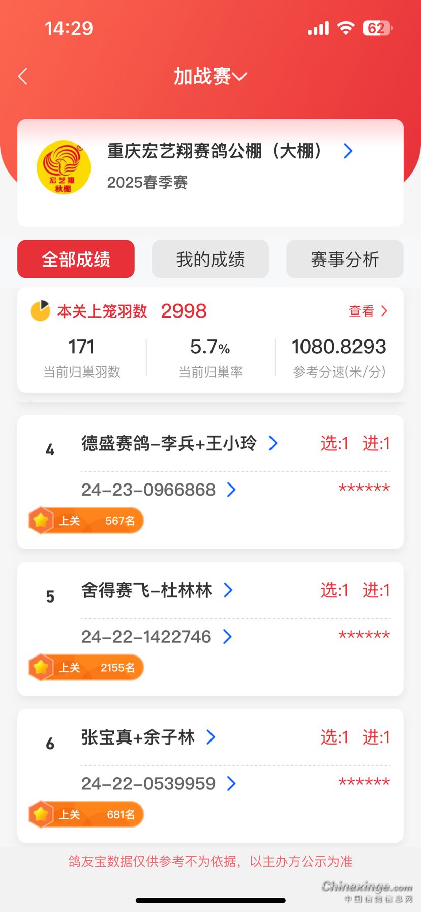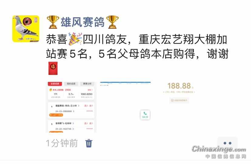 恭喜四川鸽友,重庆宏艺翔大棚加站赛5名,父母鸽本店购得!感谢