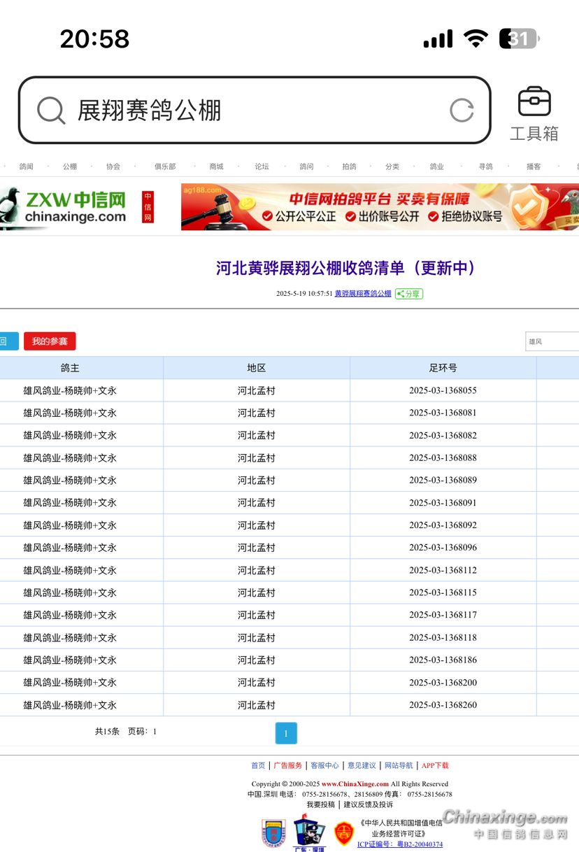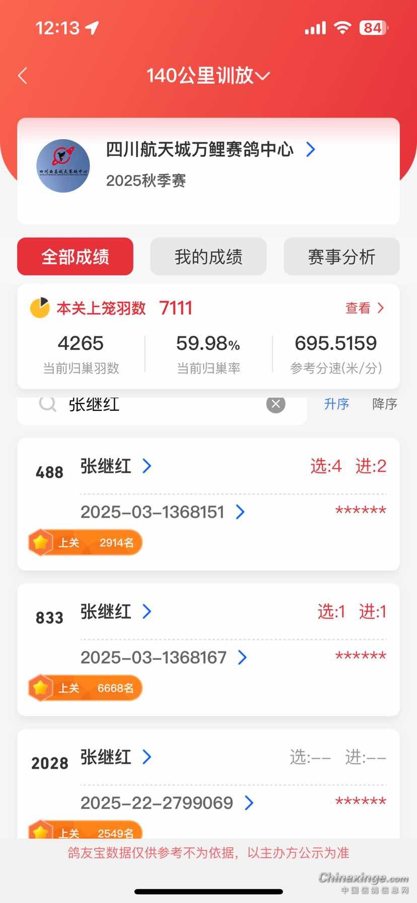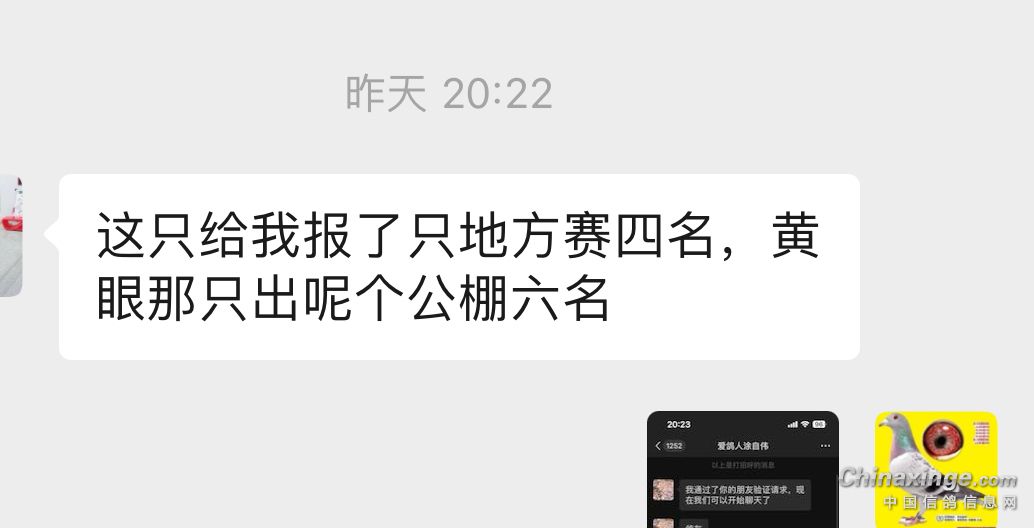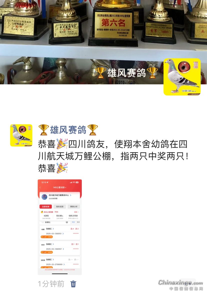 恭喜四川鸽友,使翔本舍幼鸽,指两只中奖两只