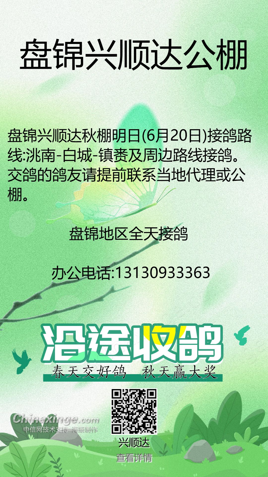 盘锦兴顺达公棚6月20日镇赉方向接鸽路线