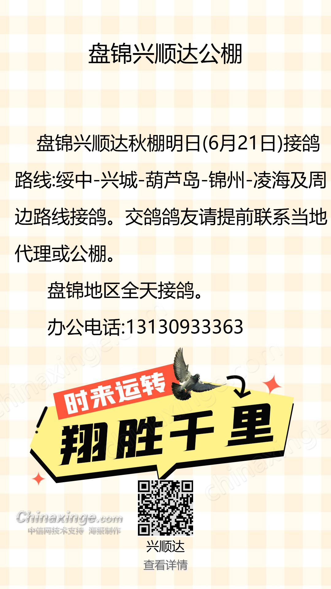 盘锦兴顺达公棚6月21日接鸽路线(绥中方向)