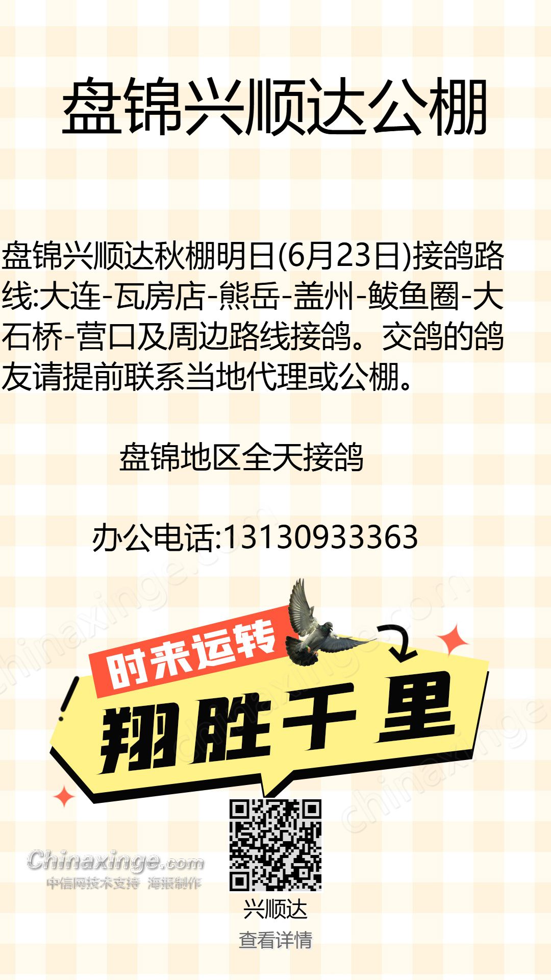 盘锦兴顺达公棚6月23日大连方向接鸽路线